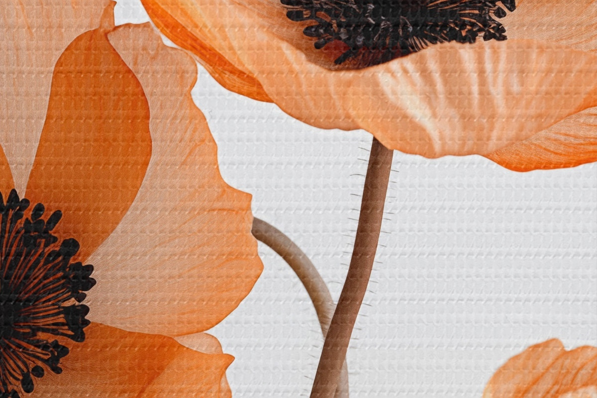 Foto Amapolas naranjas, flores secas sobre fondo claro, iluminación suave, pétalos delicados, arreglo floral Nr r45167