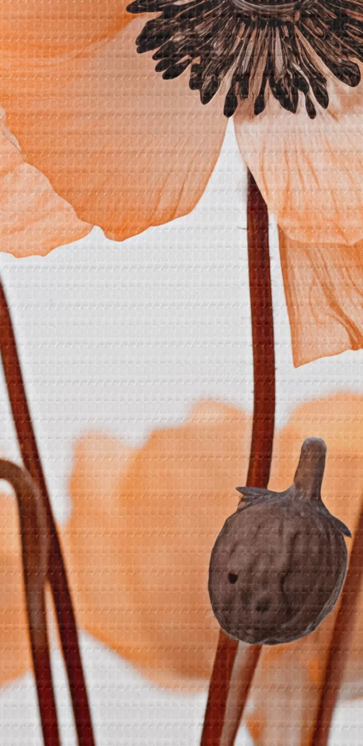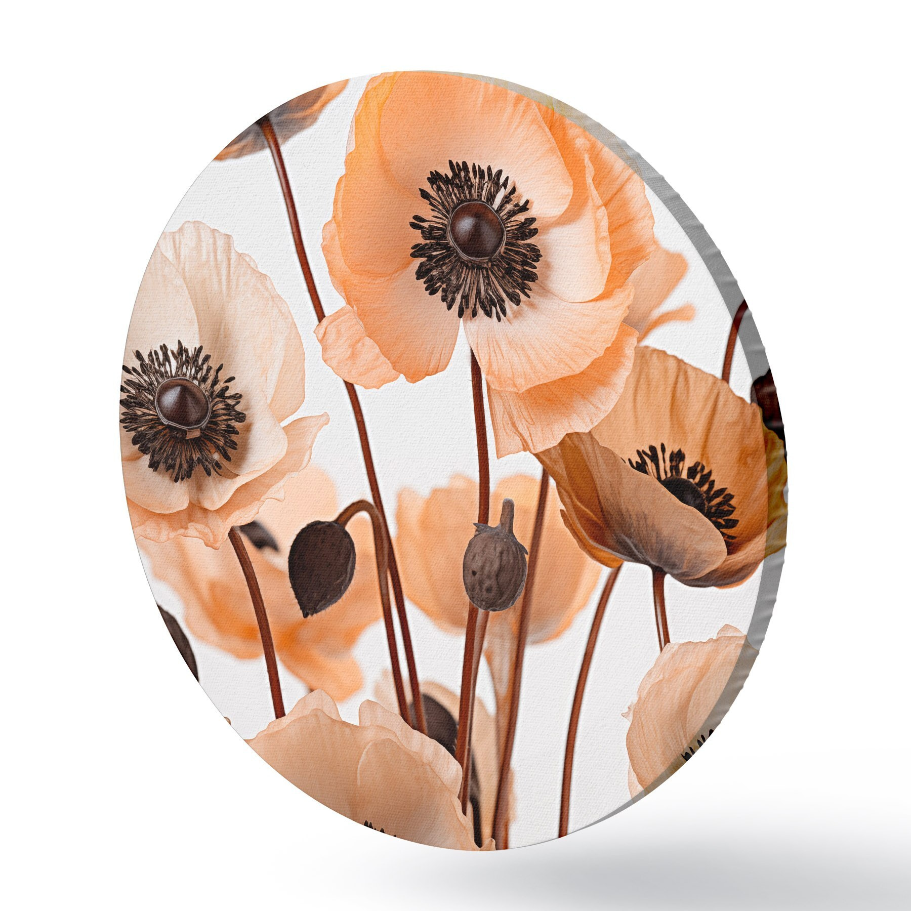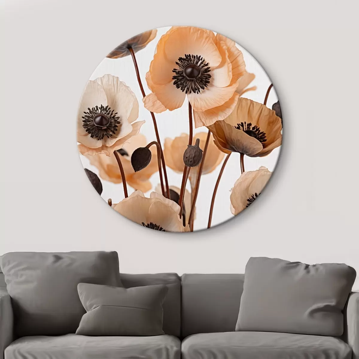 Cuadros redondos Amapolas naranjas, flores secas sobre fondo claro, iluminación suave, pétalos delicados, arreglo floral r45168
