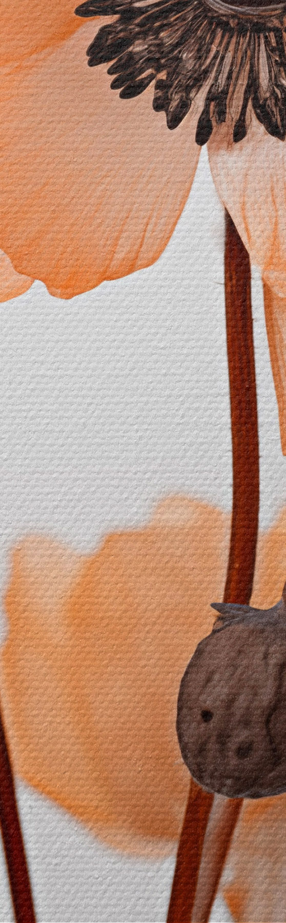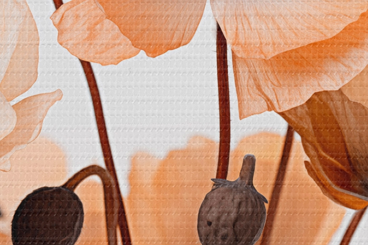 Foto Amapolas naranjas, flores secas sobre fondo claro, iluminación suave, pétalos delicados, arreglo floral Nr r45168