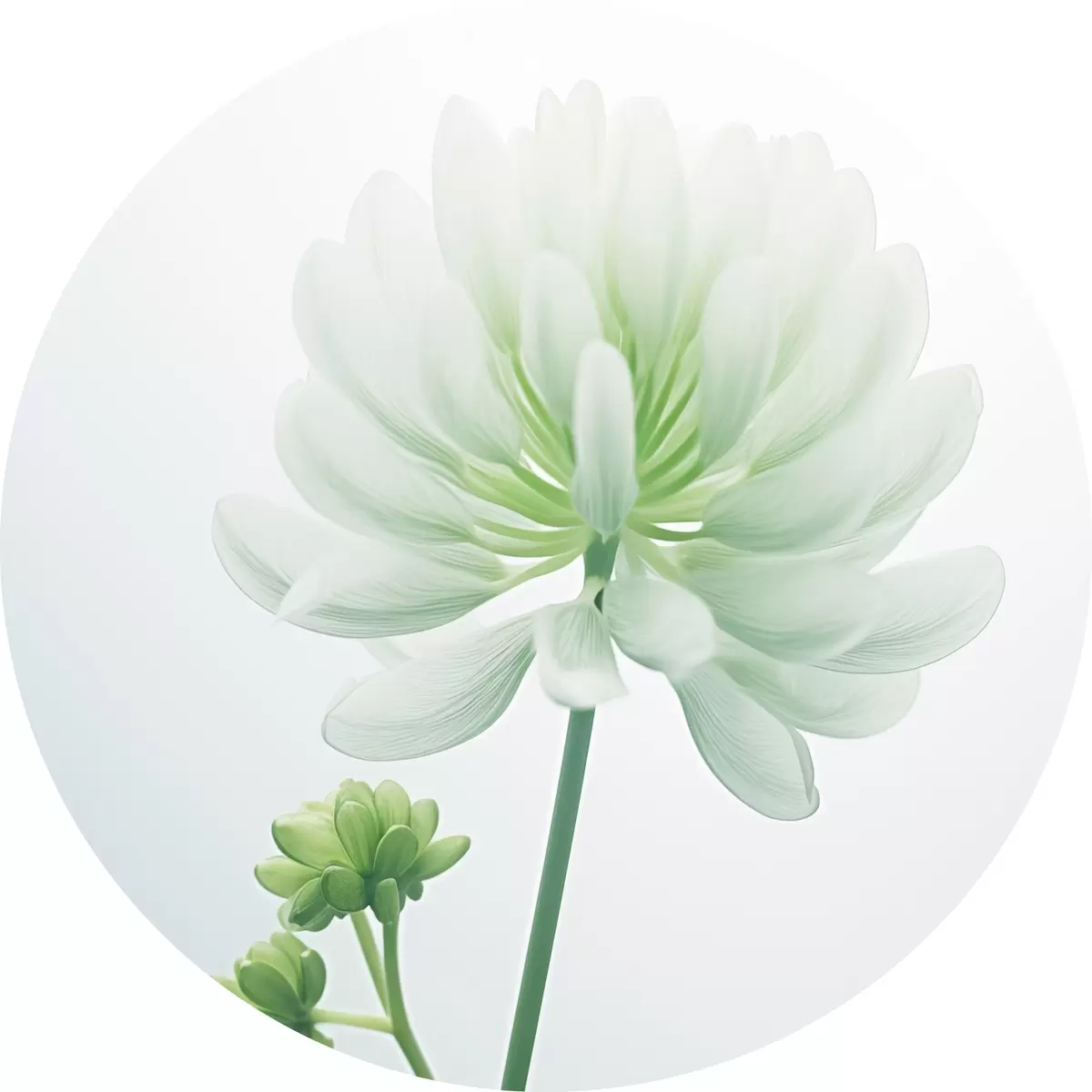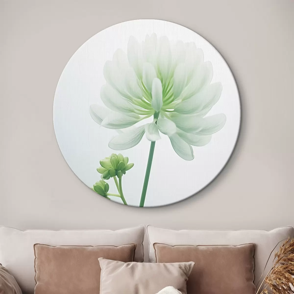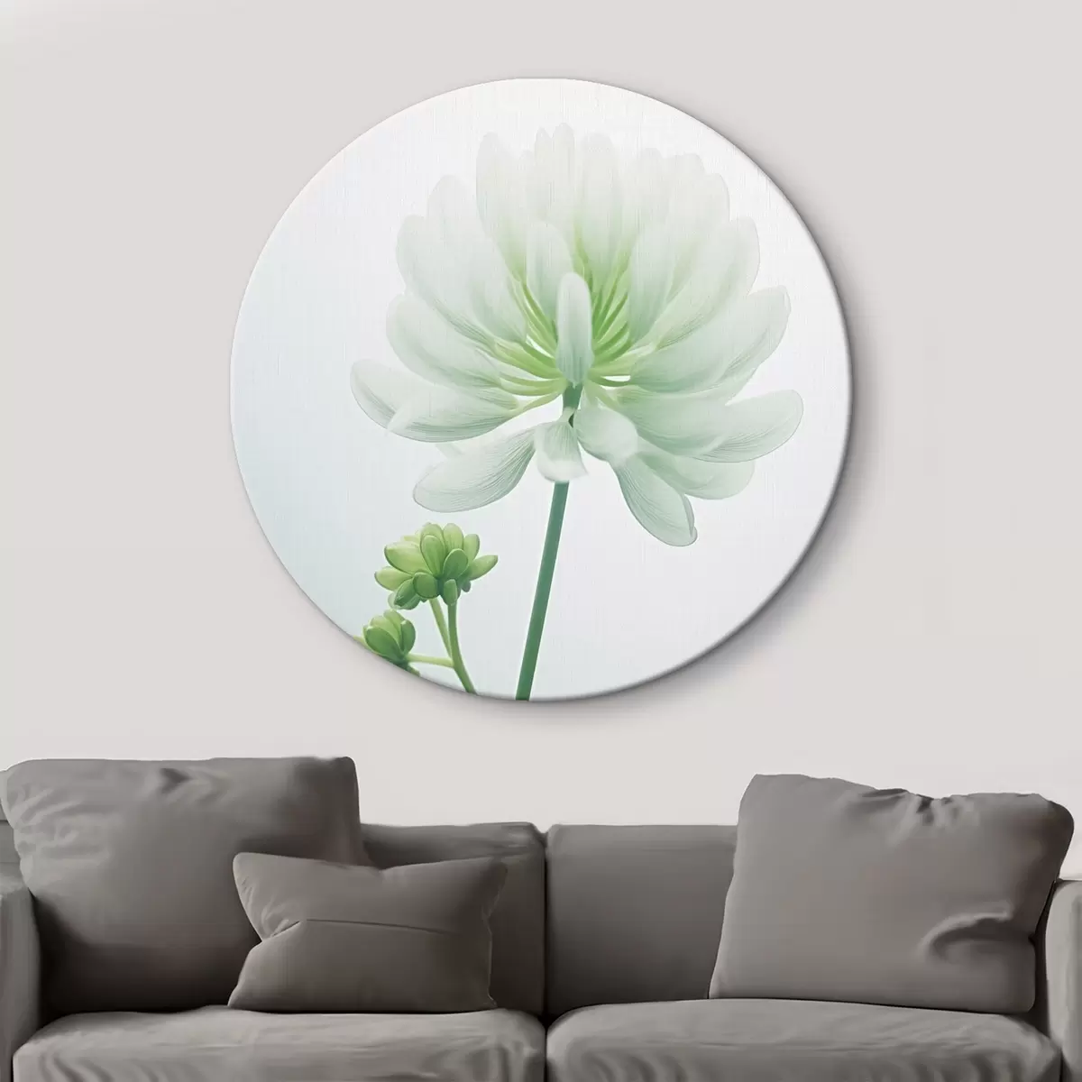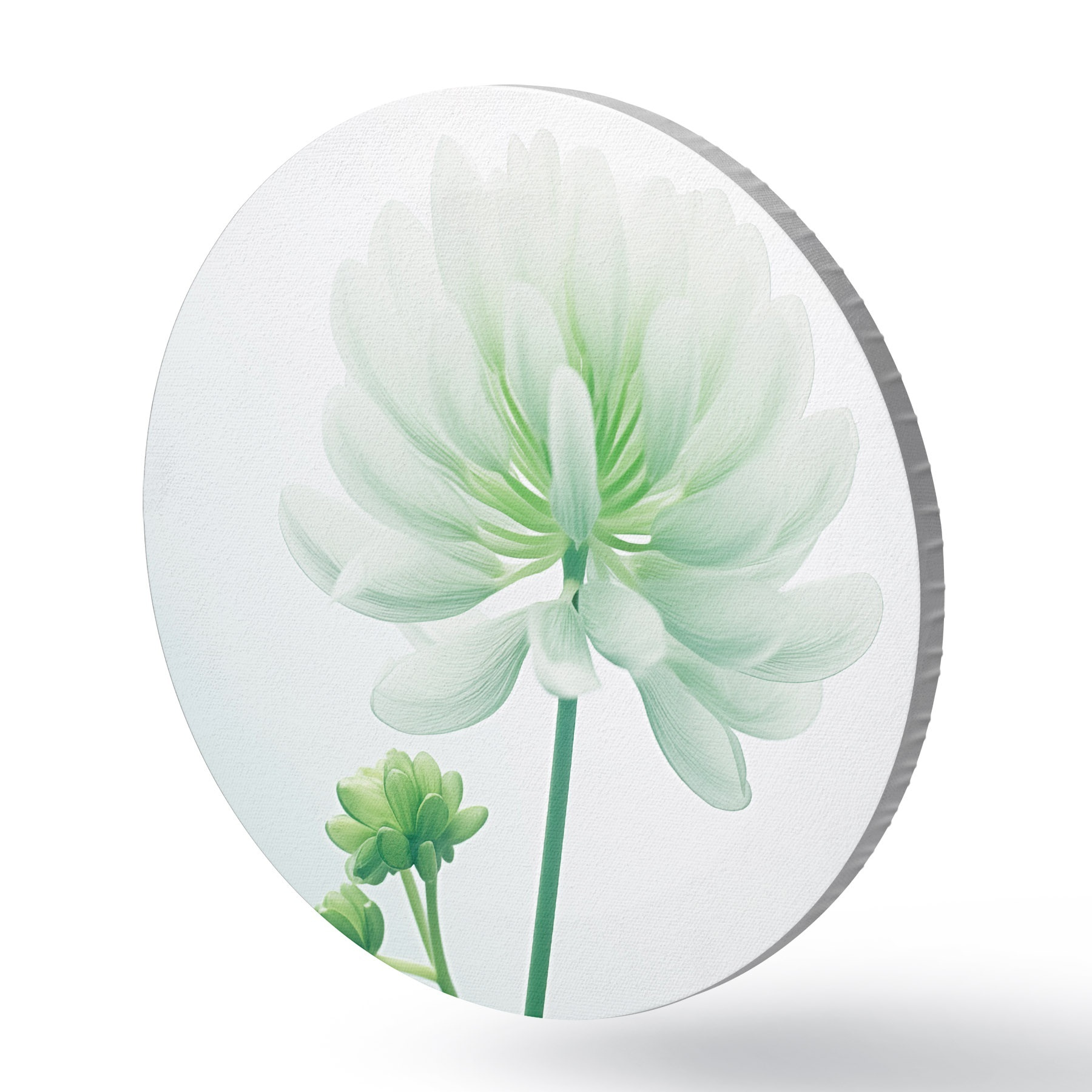 Cuadros redondos Flor de trébol blanco con tallo y hojas verdes, iluminación suave, fondo limpio, composición minimalista, botánica r45171