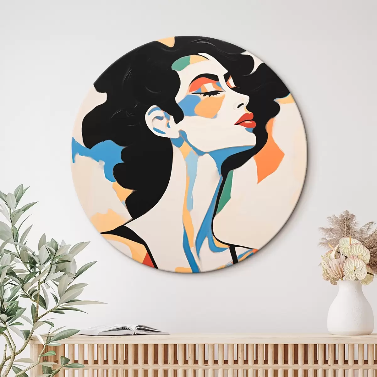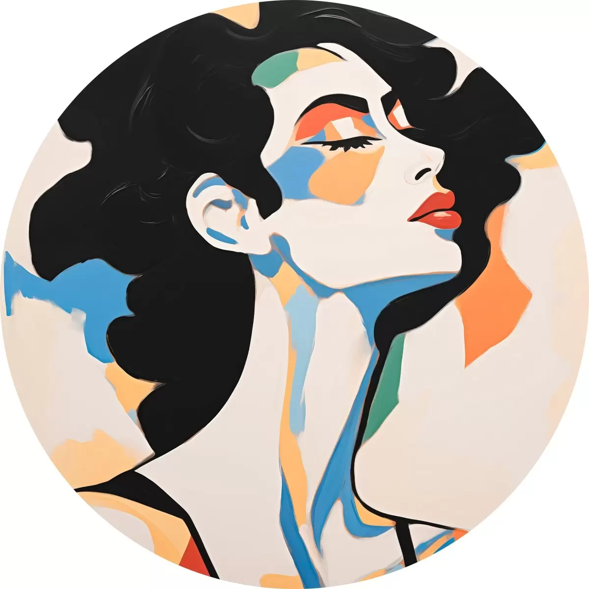 Cuadros redondos Retrato abstracto de una mujer con imitación de pinceladas r45233