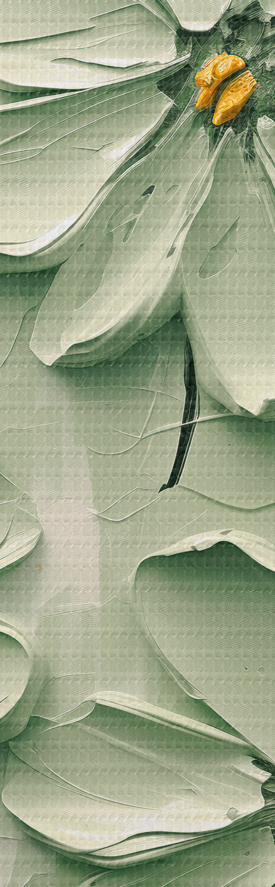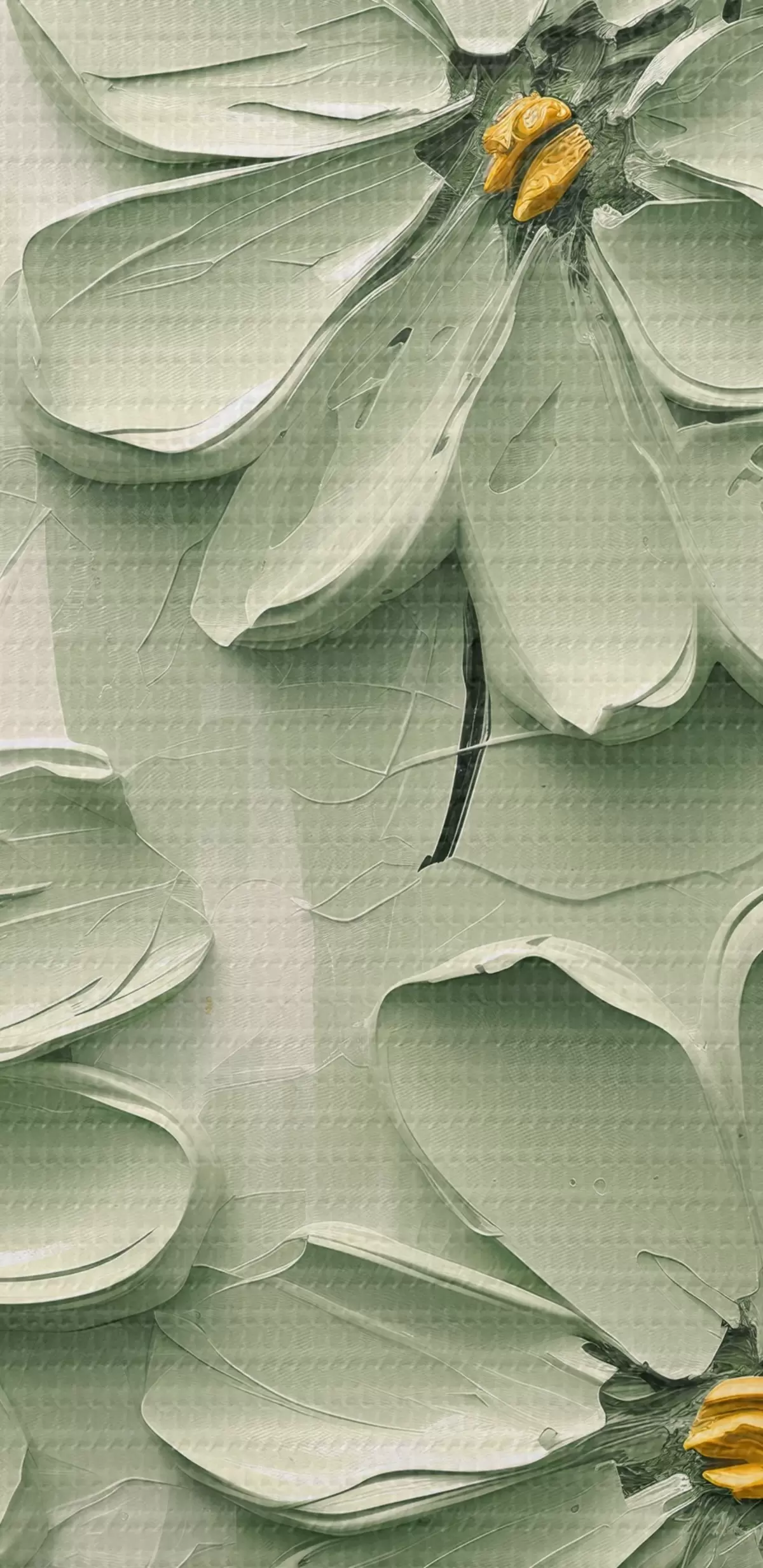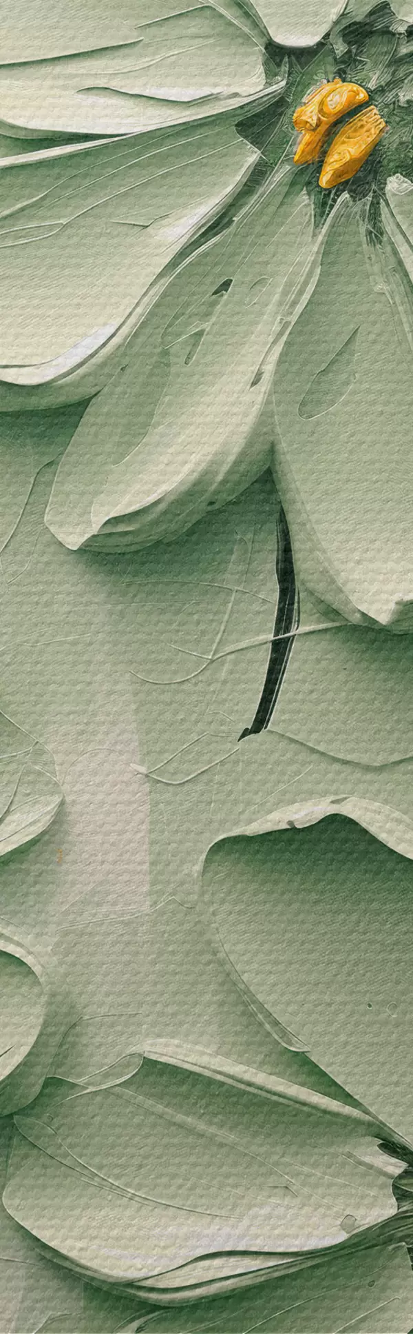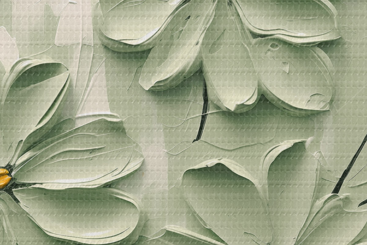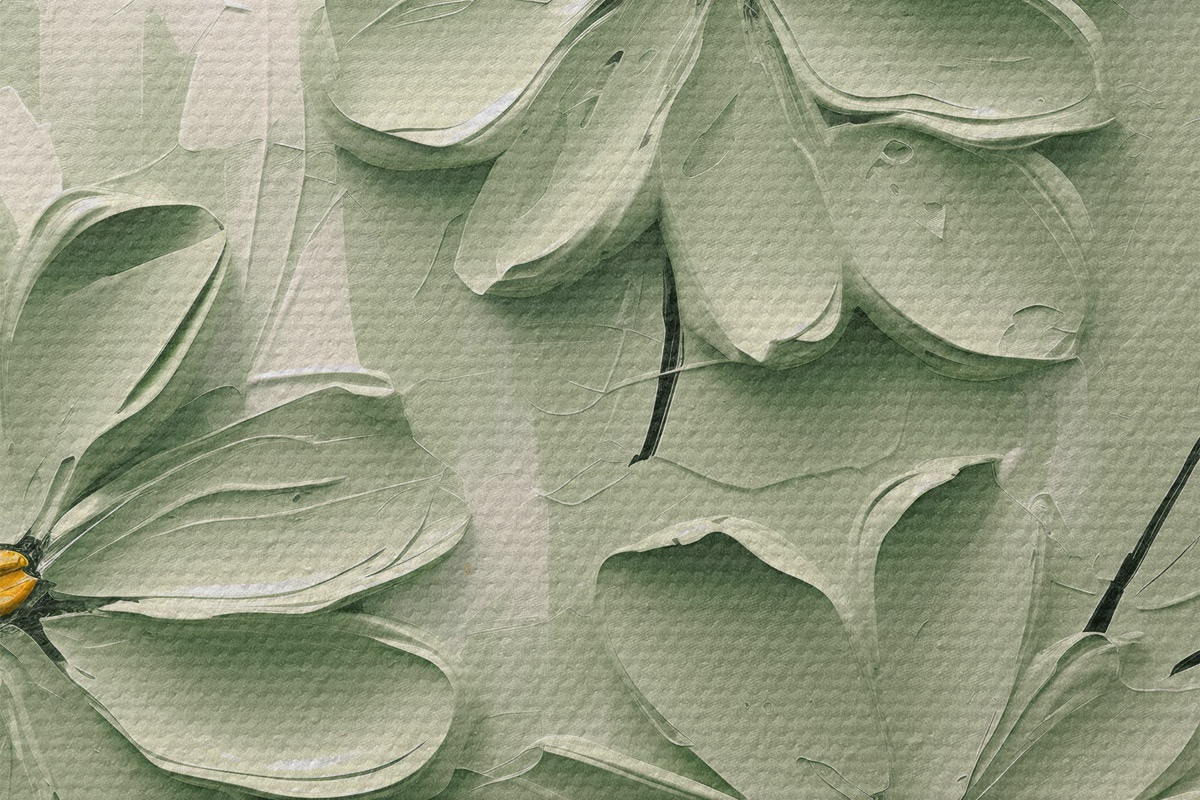 Foto Flores verdes con centros amarillos pintadas con pinceladas gruesas sobre fondo claro Nr r45265