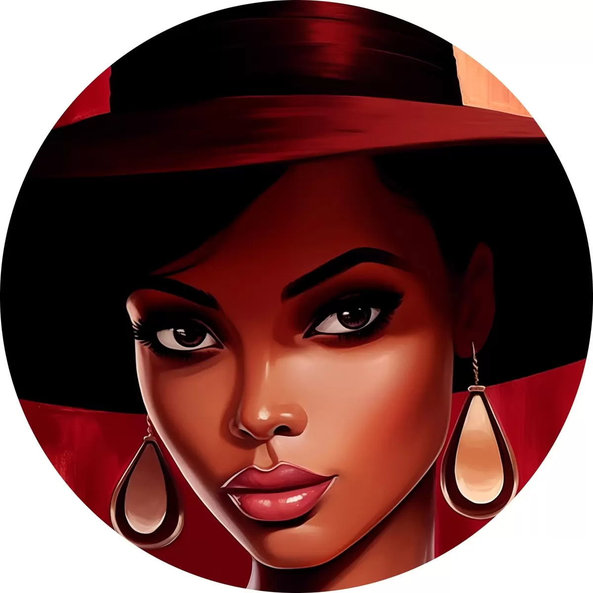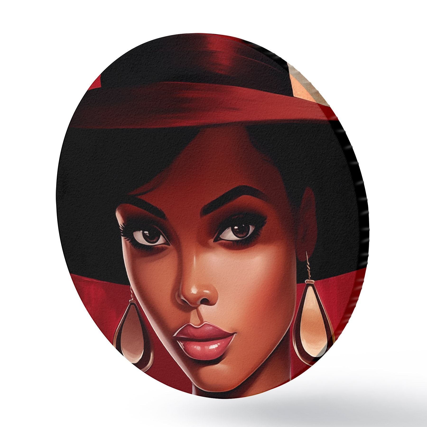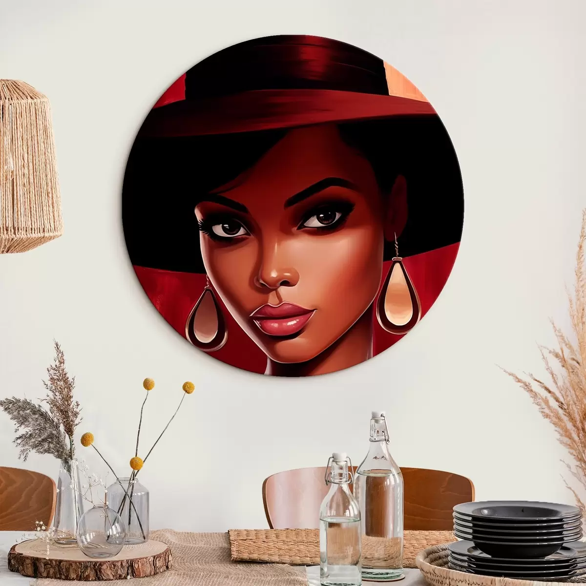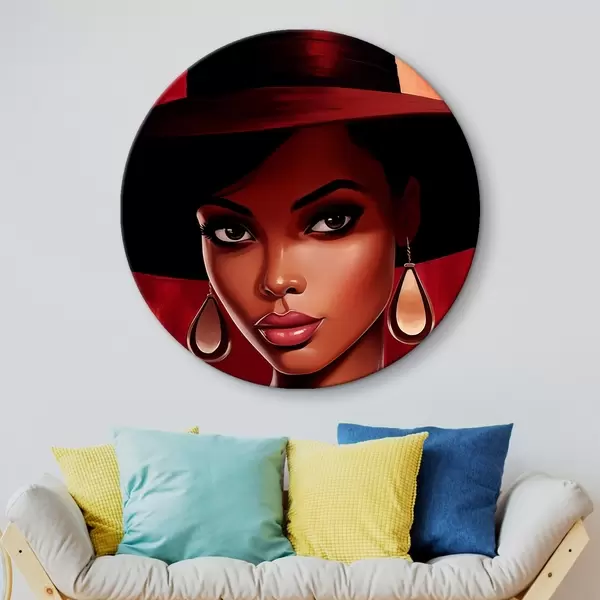 Cuadros redondos Mujer con sombrero y pendientes r45322