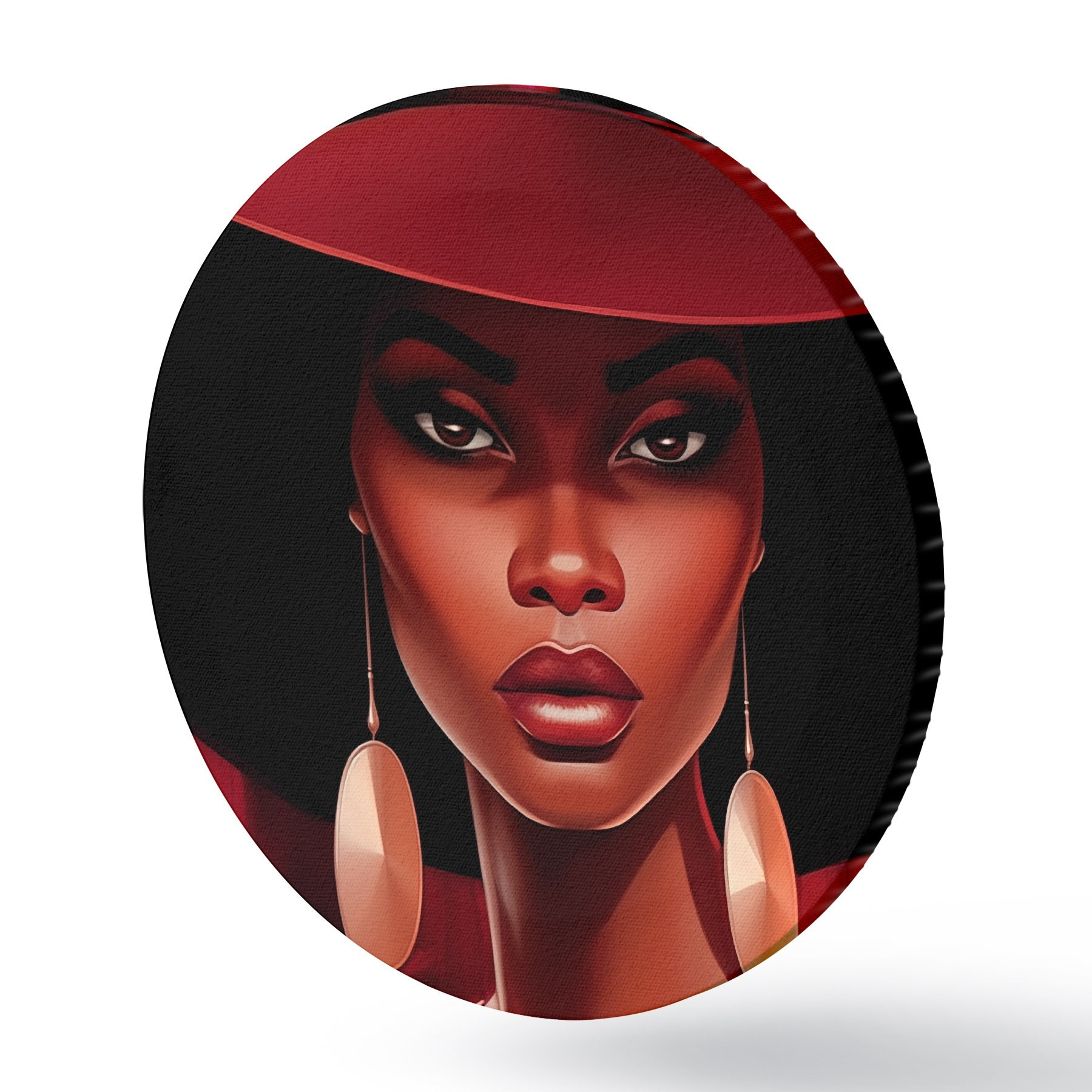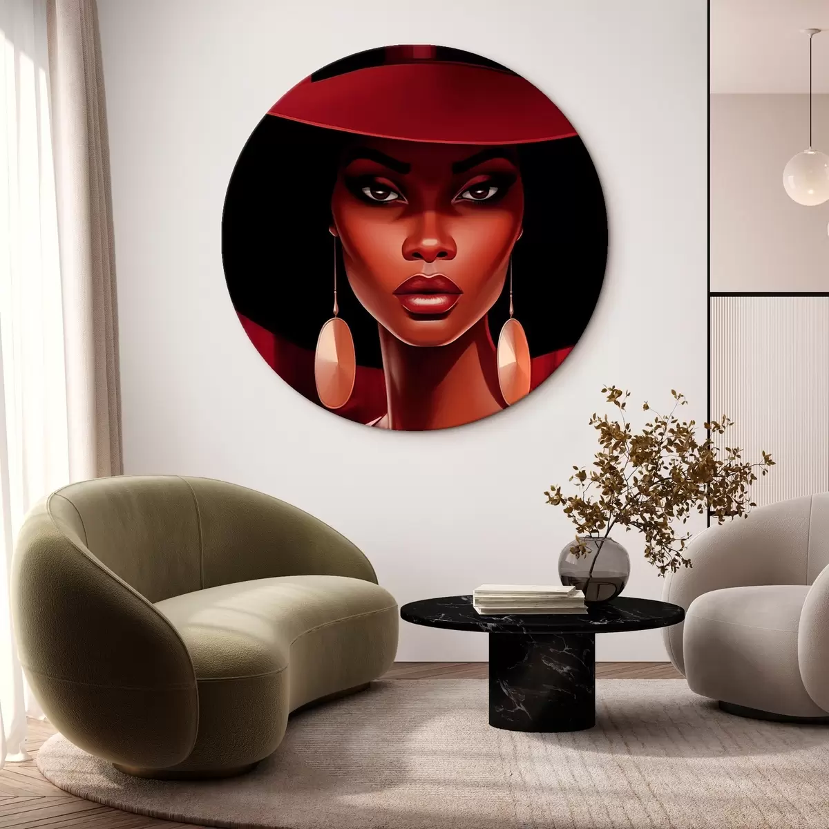 Cuadros redondos Mujer con sombrero y pendientes redondos r45325