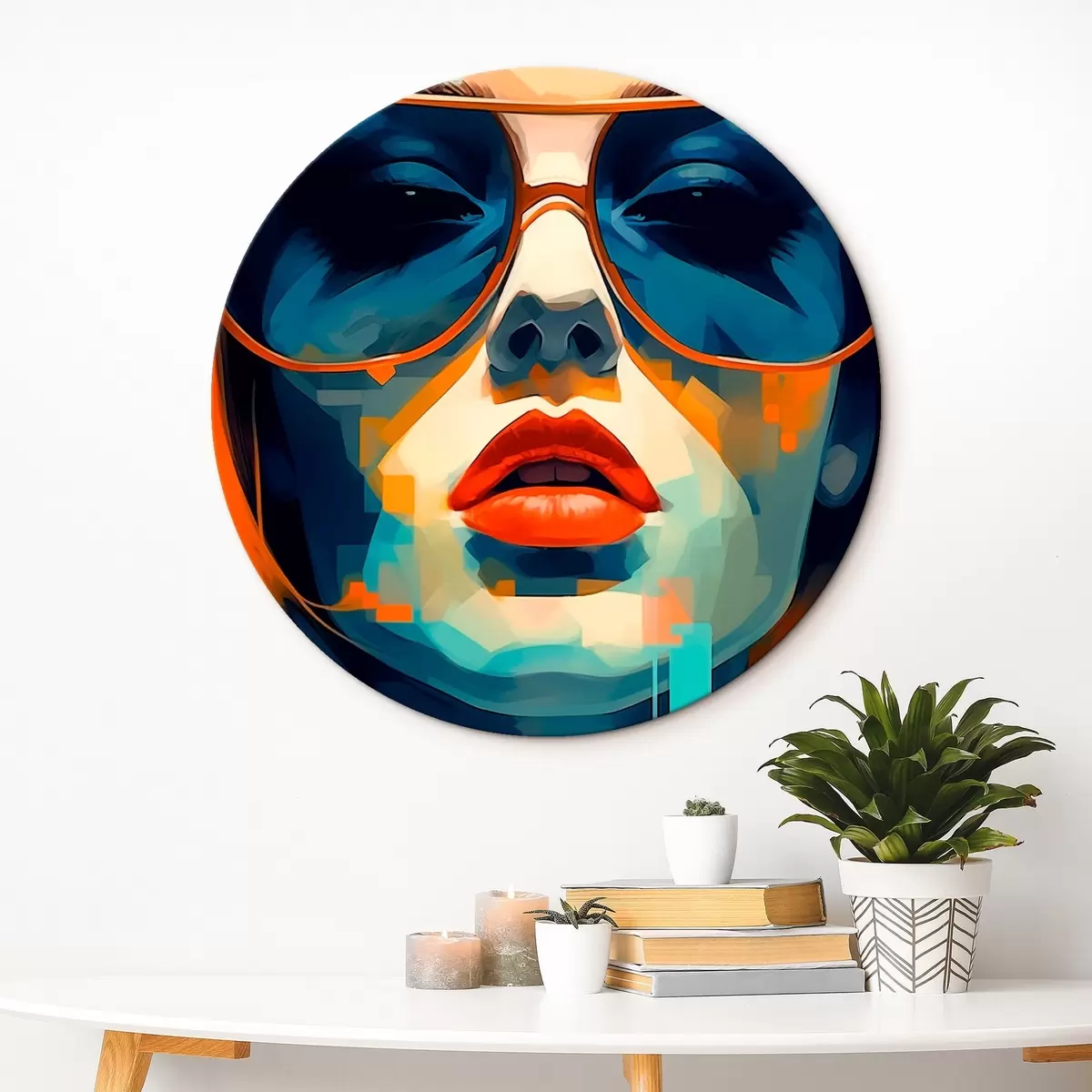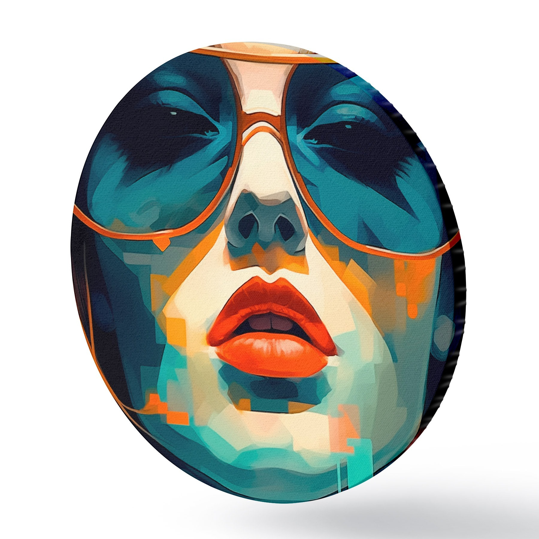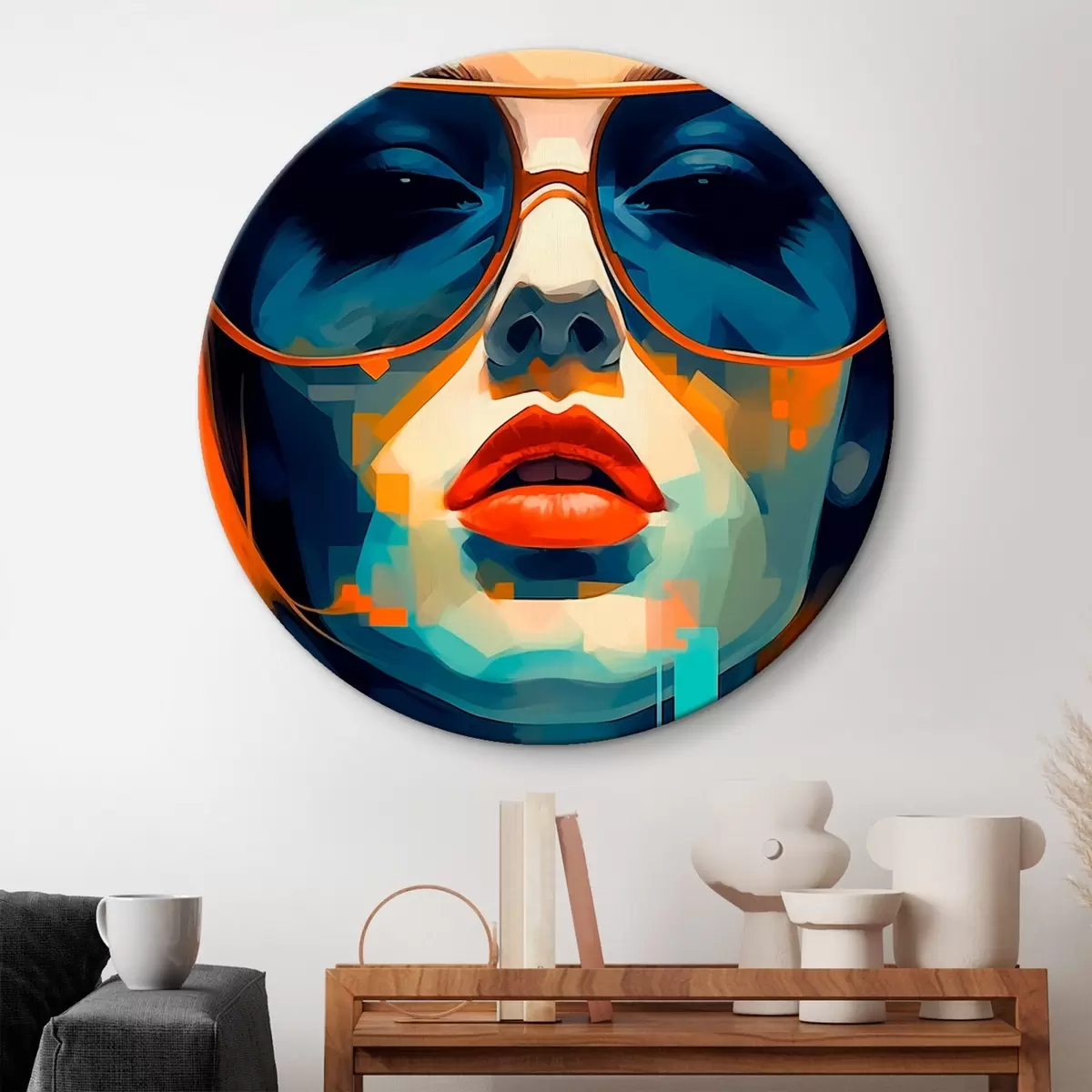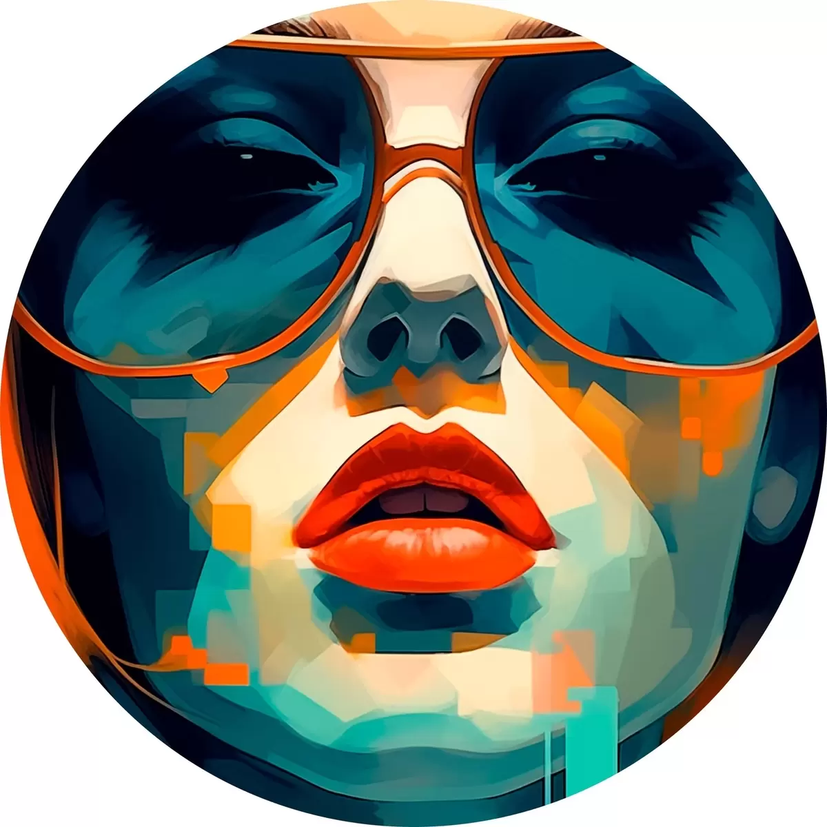 Cuadros redondos Retrato femenino abstracto con gafas de sol r45328