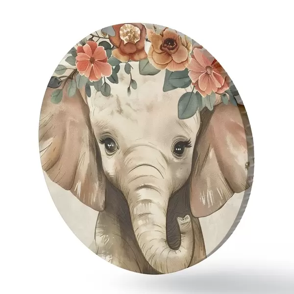 Cuadros redondos Lindo elefante de acuarela con flores r45330