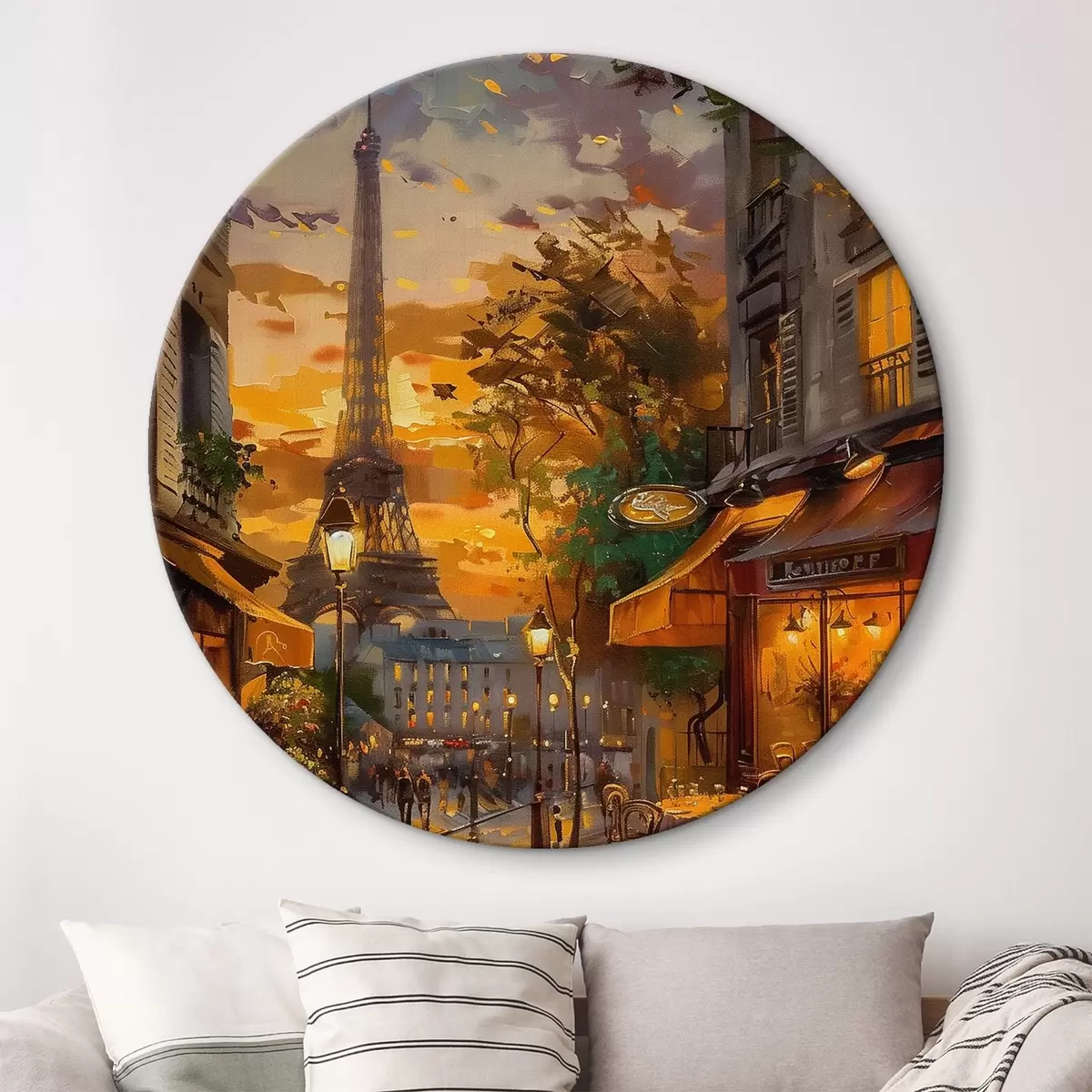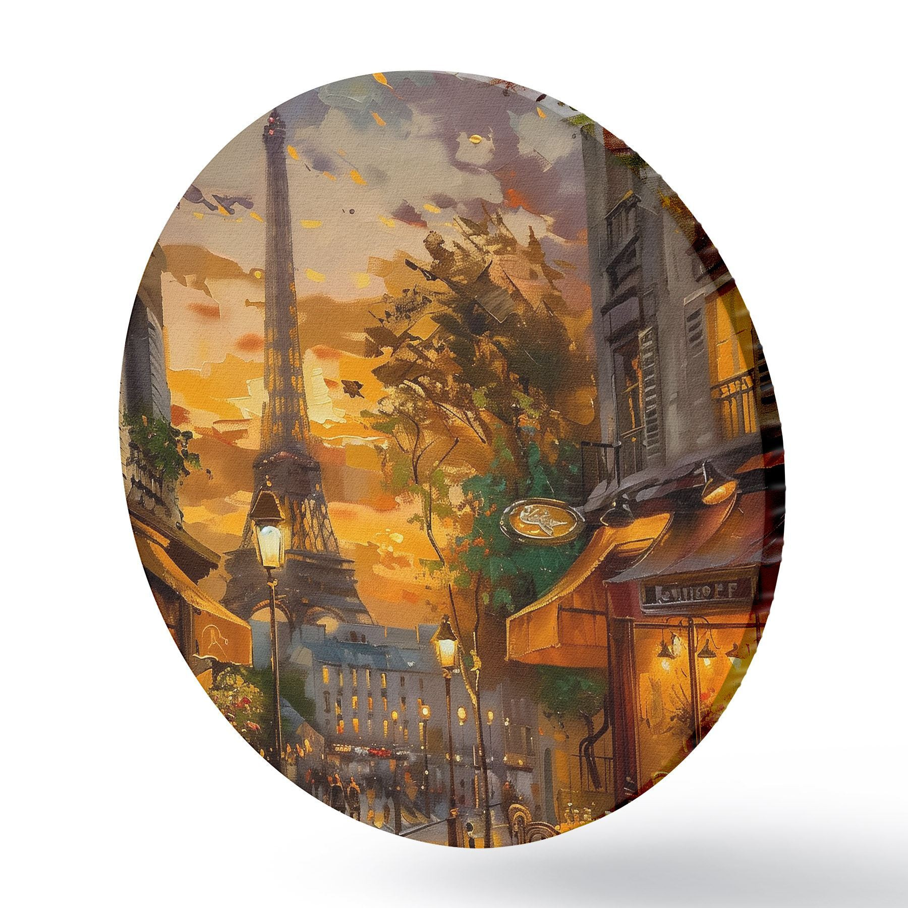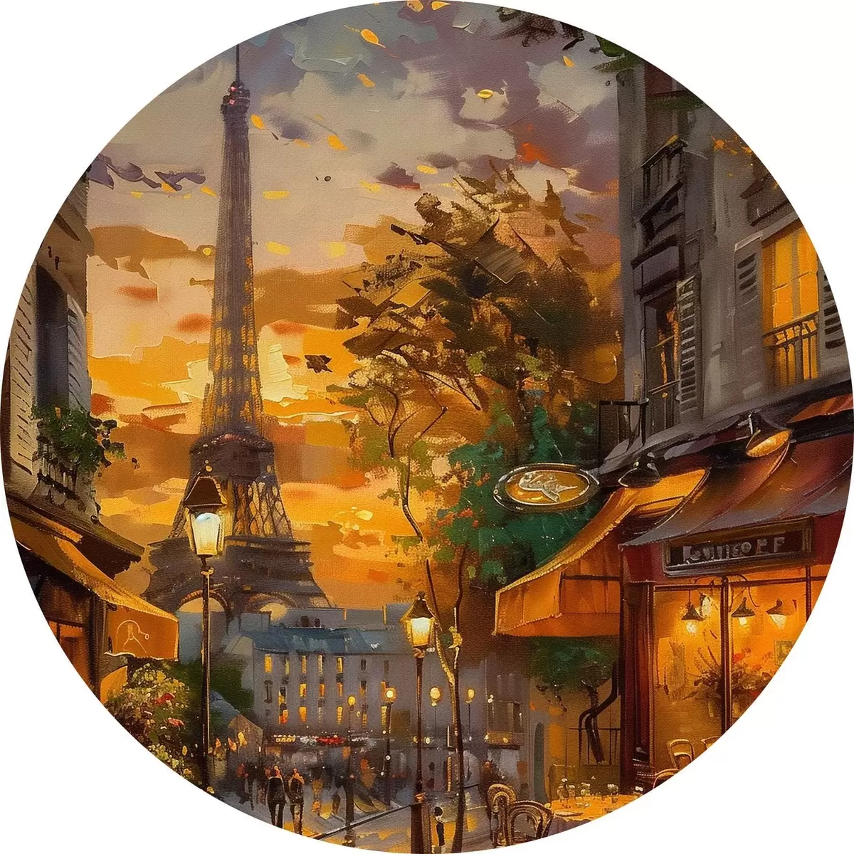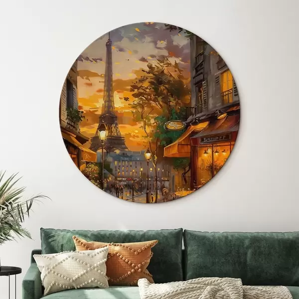 Cuadros redondos Calle en París, efecto de pintura al óleo r45340