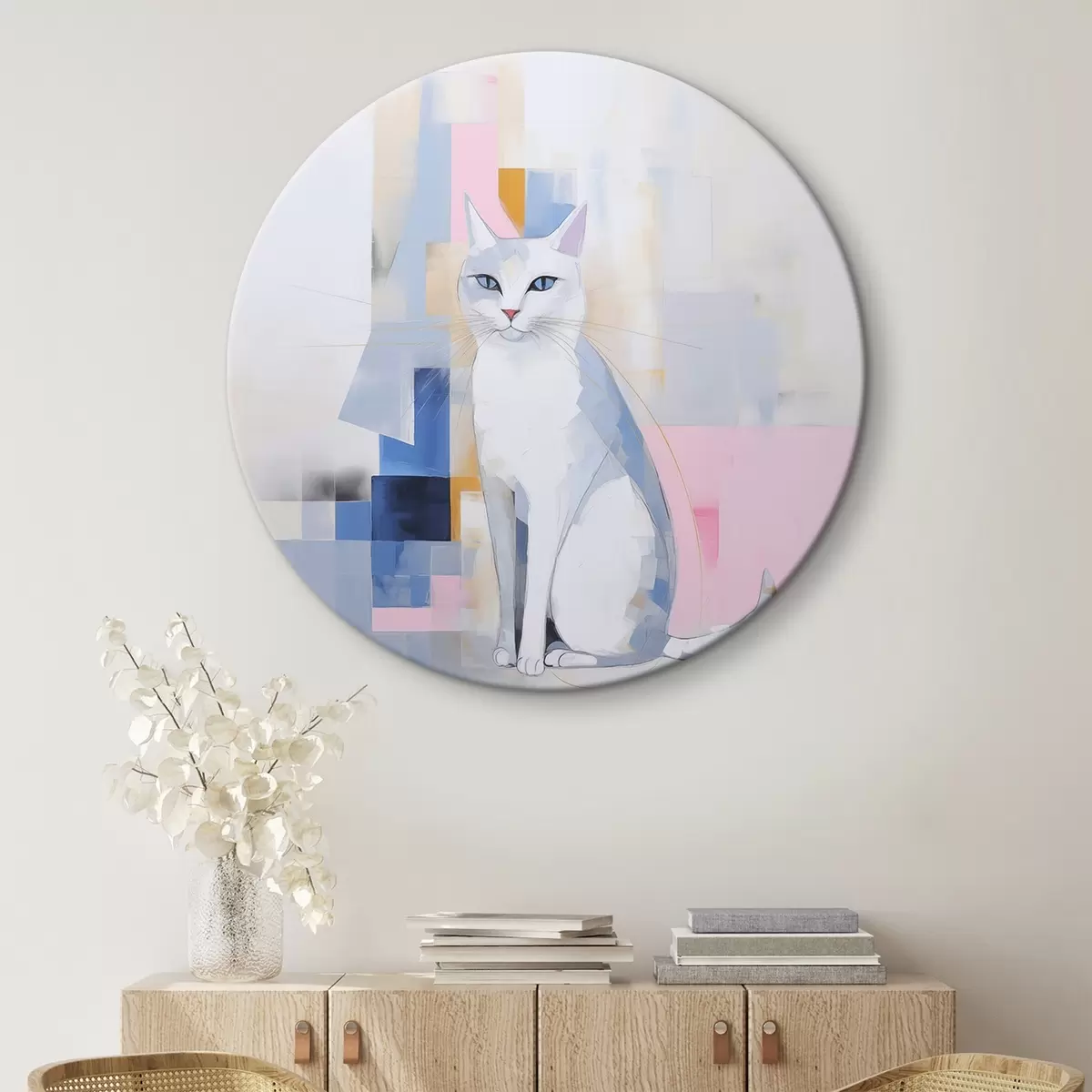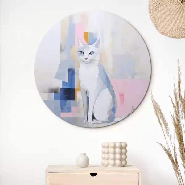 Cuadros redondos gato abstracto r45359