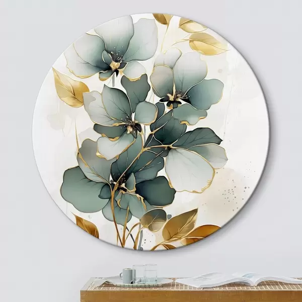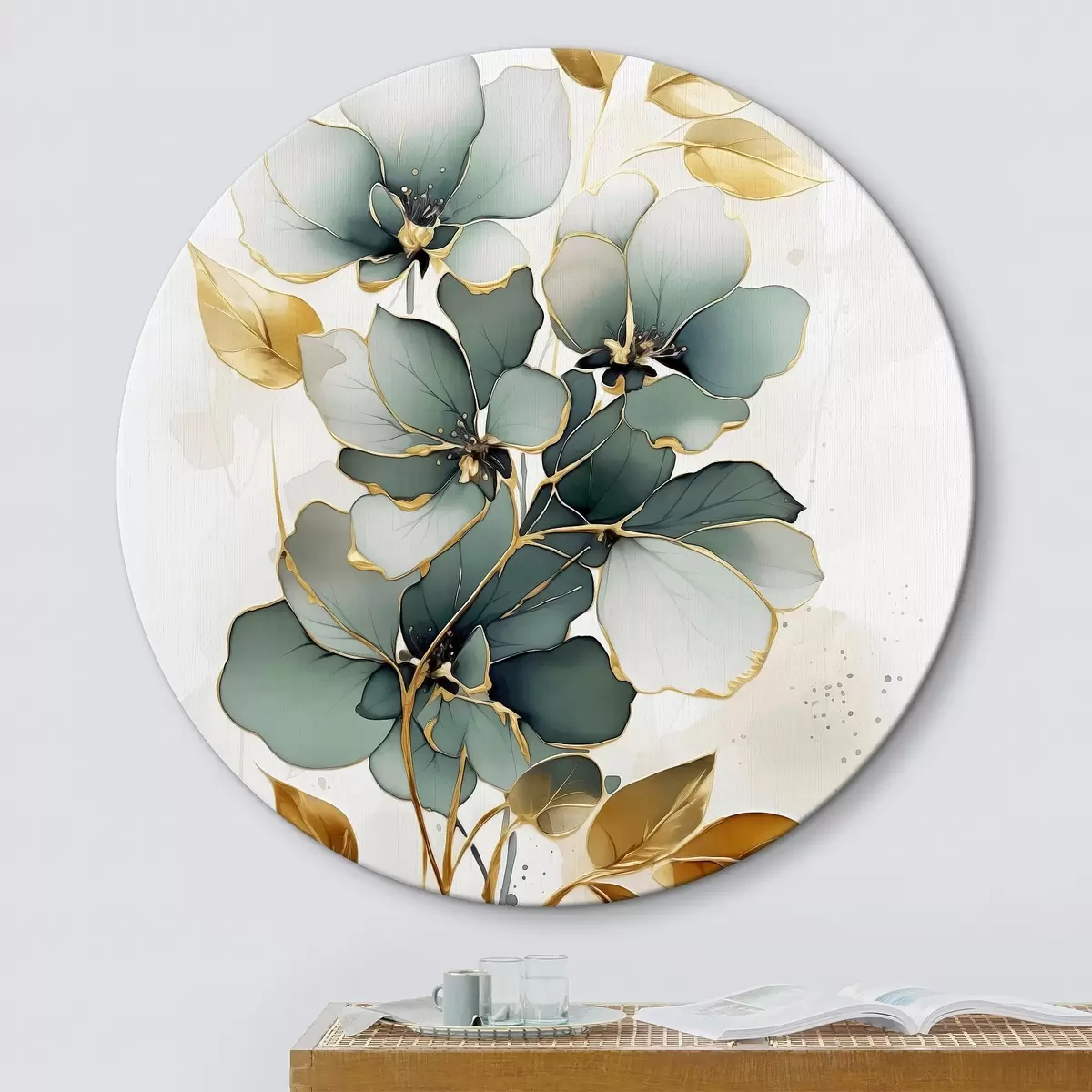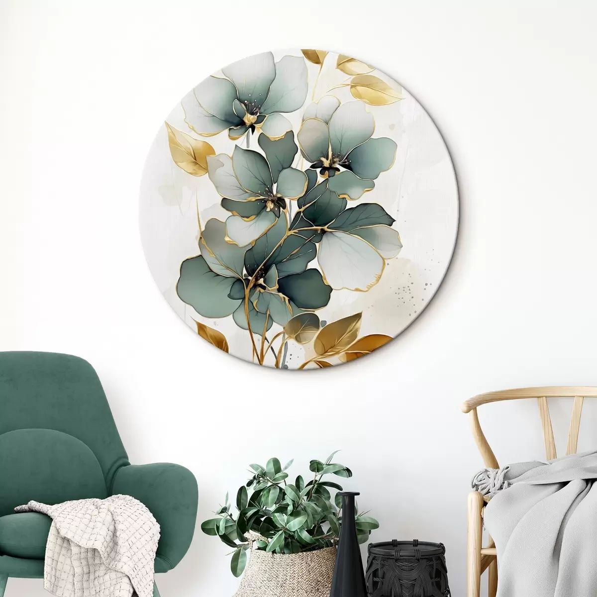 Cuadros redondos Rama abstracta con flores y hojas r45367
