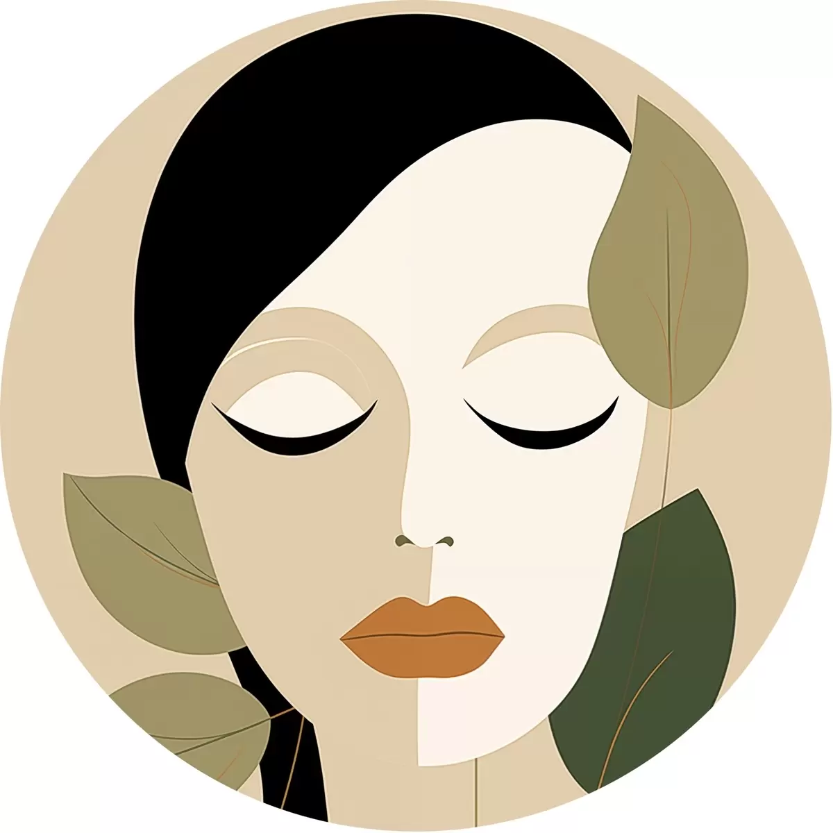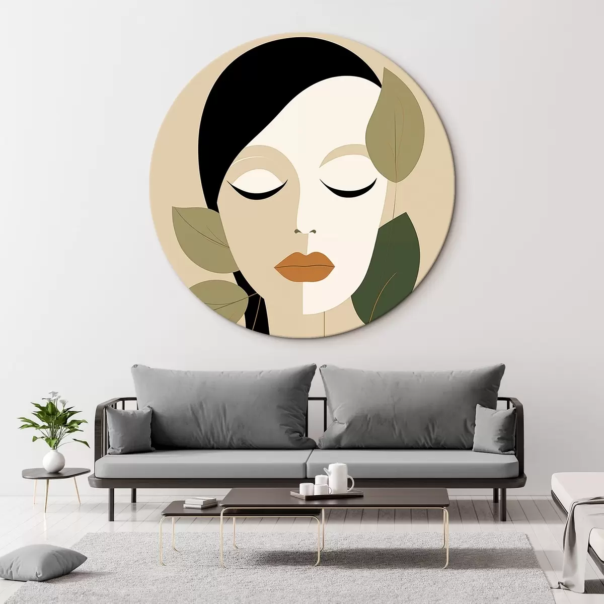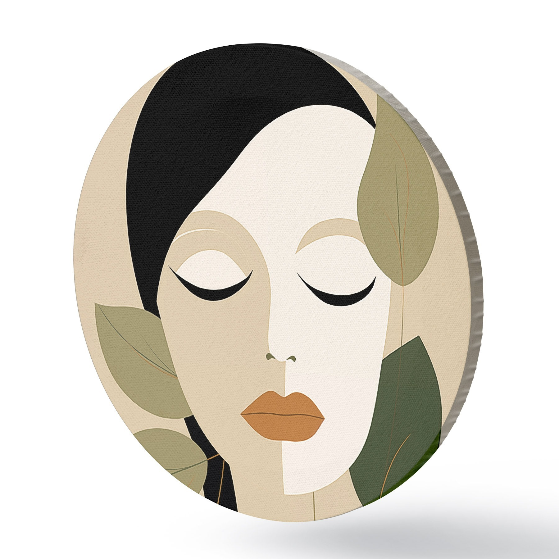 Cuadros redondos Niña con hojas r45389