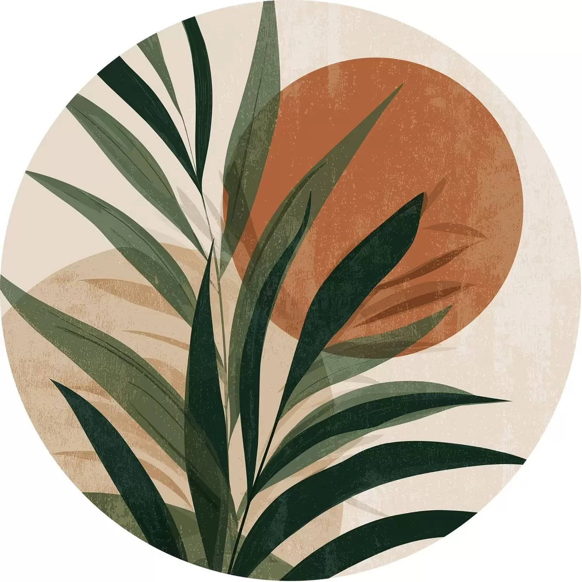 Cuadros redondos Hojas verdes y puesta de sol r45394