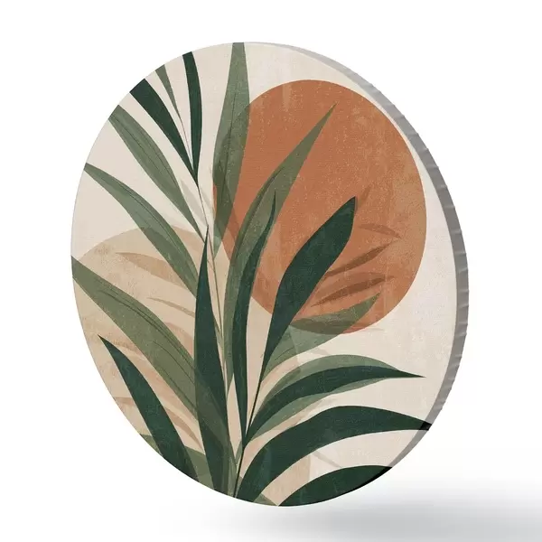 Cuadros redondos Hojas verdes y puesta de sol r45394