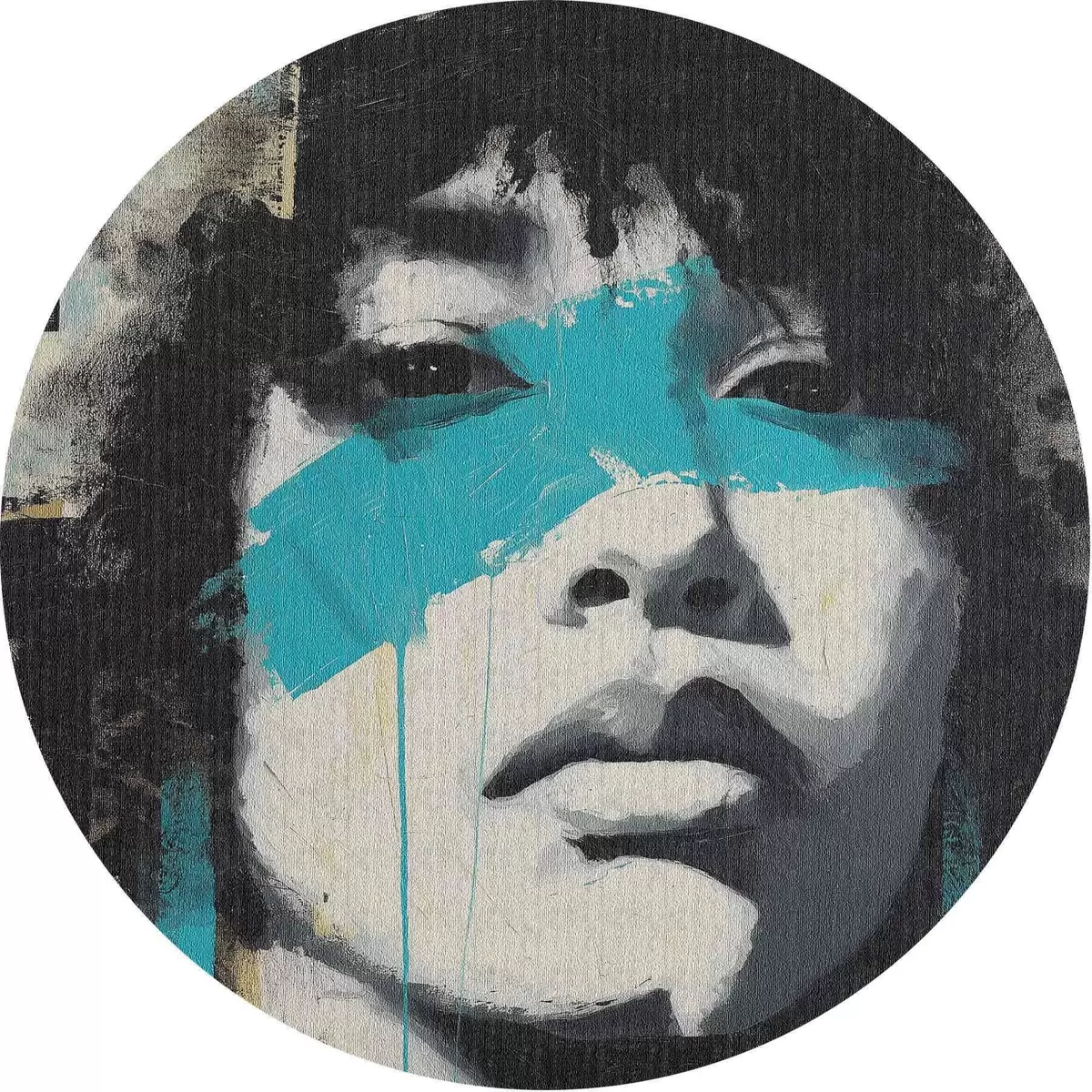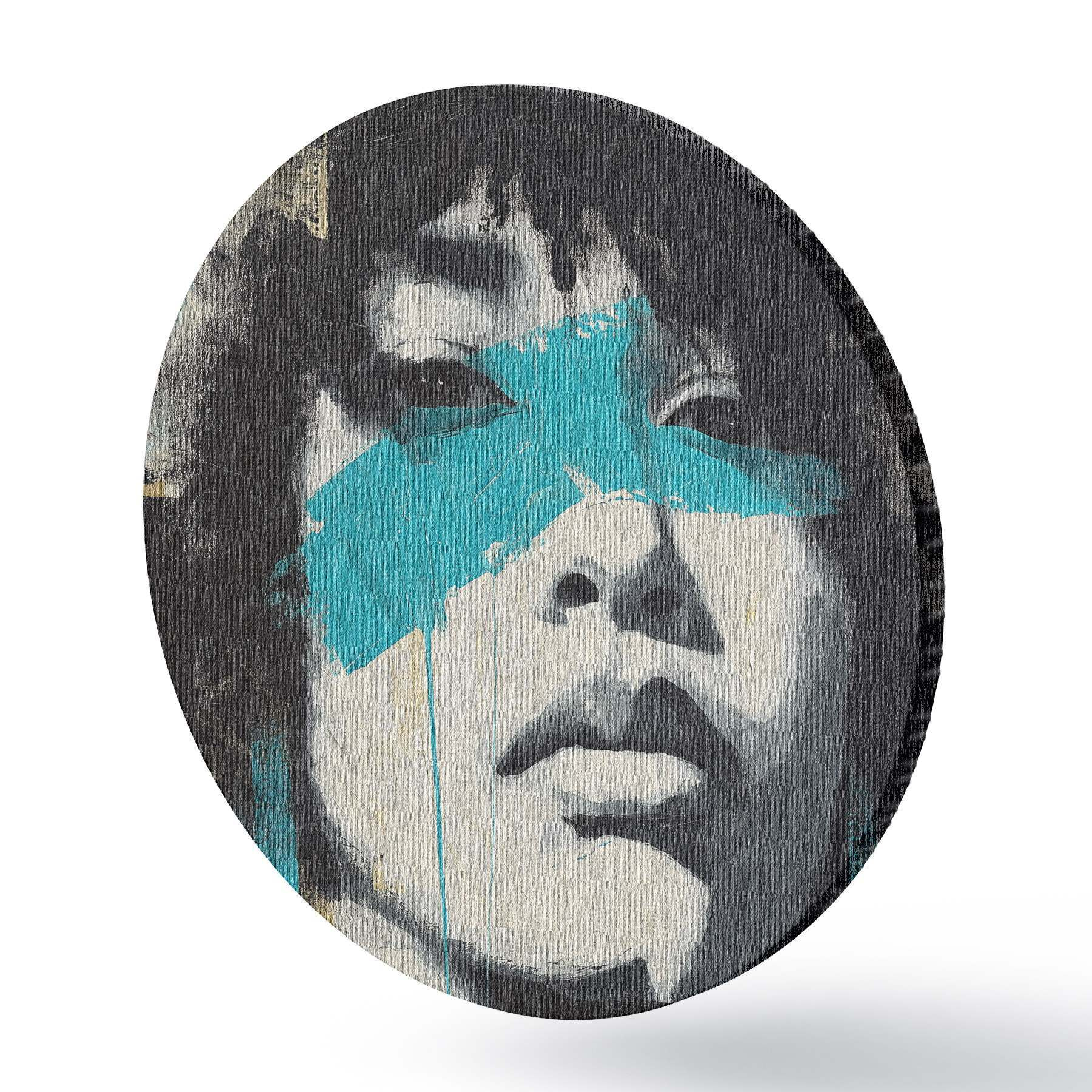 Cuadros redondos Retrato en técnica mixta con fragmentos de pinceladas de color y texturas r45417