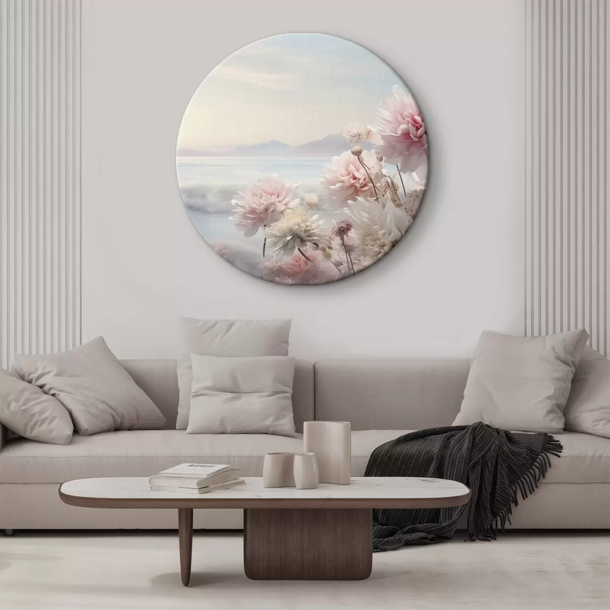 Cuadros redondos Pintura abstracta en tonos blanco, azul y azul oscuro r45496