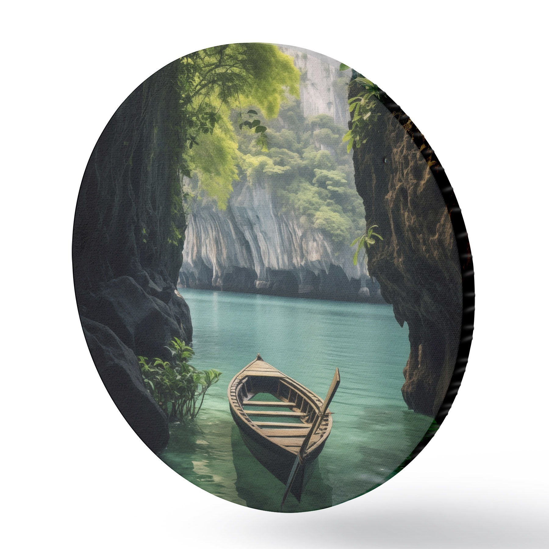 Cuadros redondos Un árbol solitario en un lago bajo un cielo rosa r45507