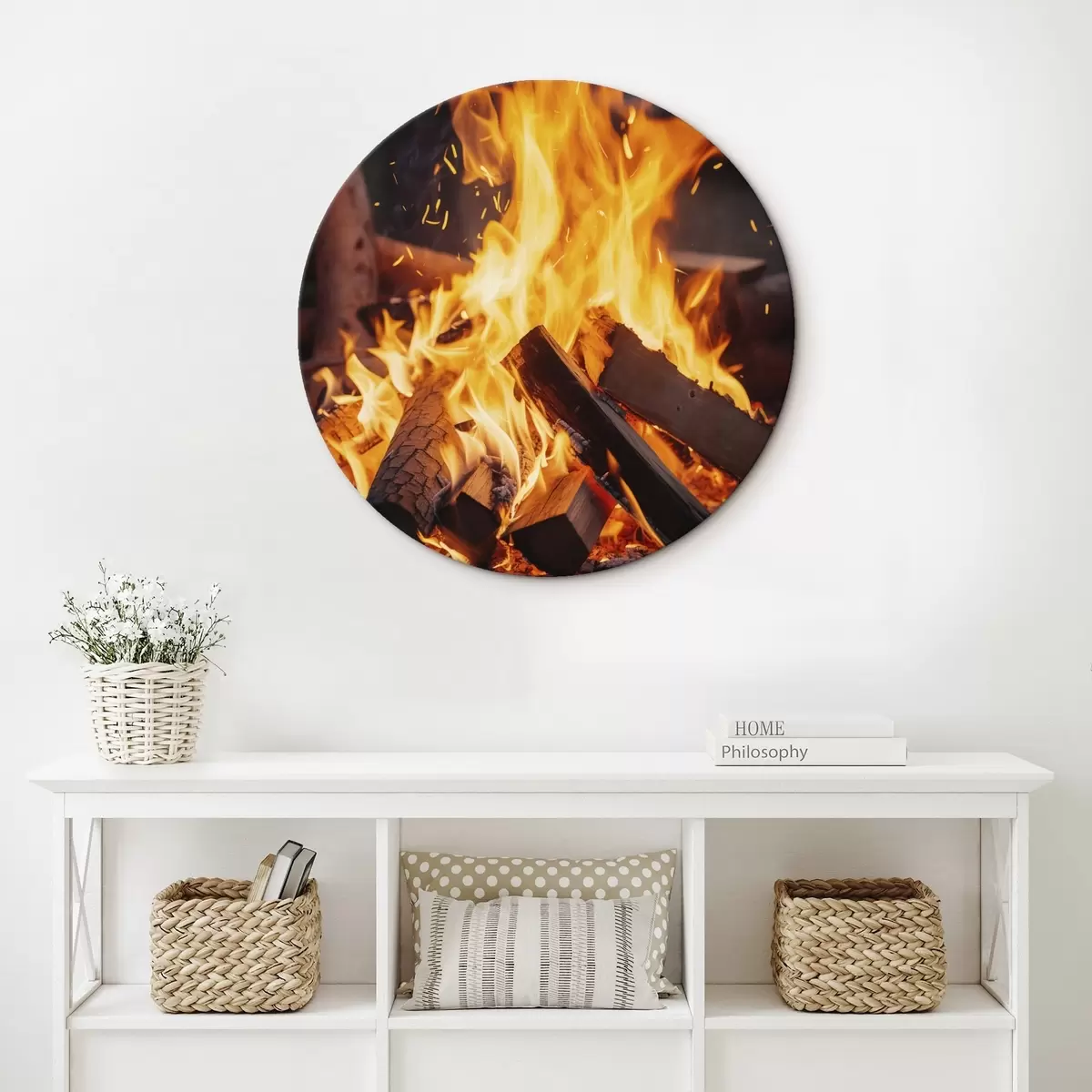Cuadros redondos Fuego ardiente en la oscuridad r45514