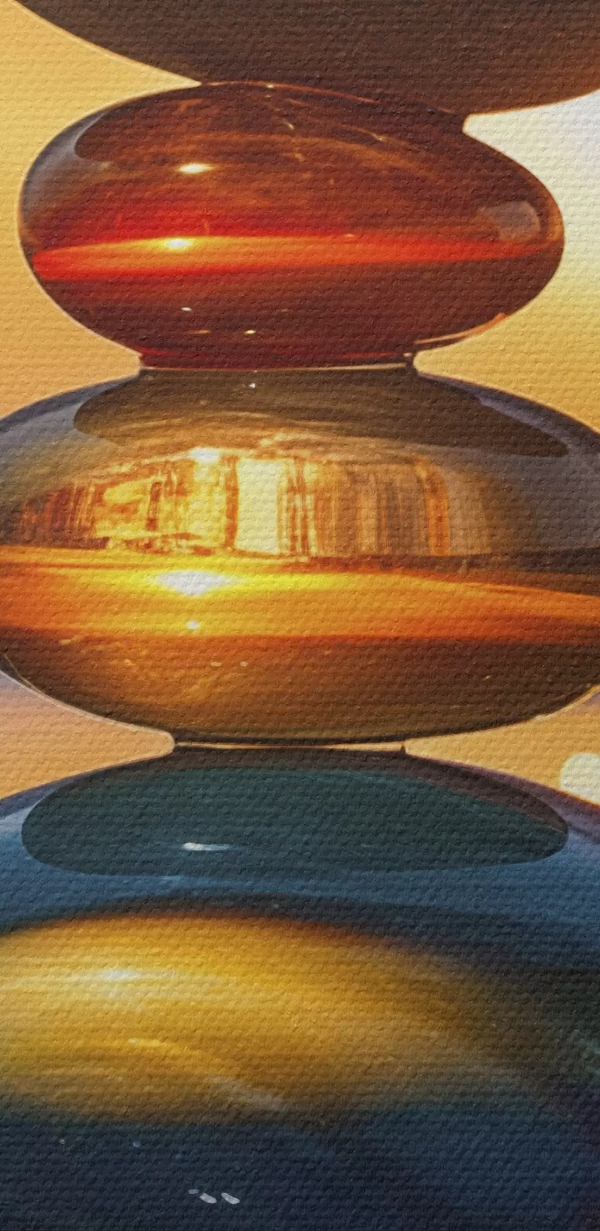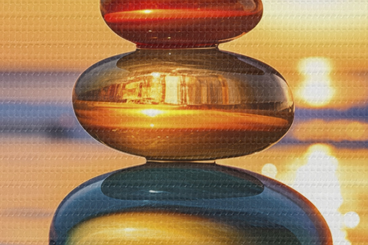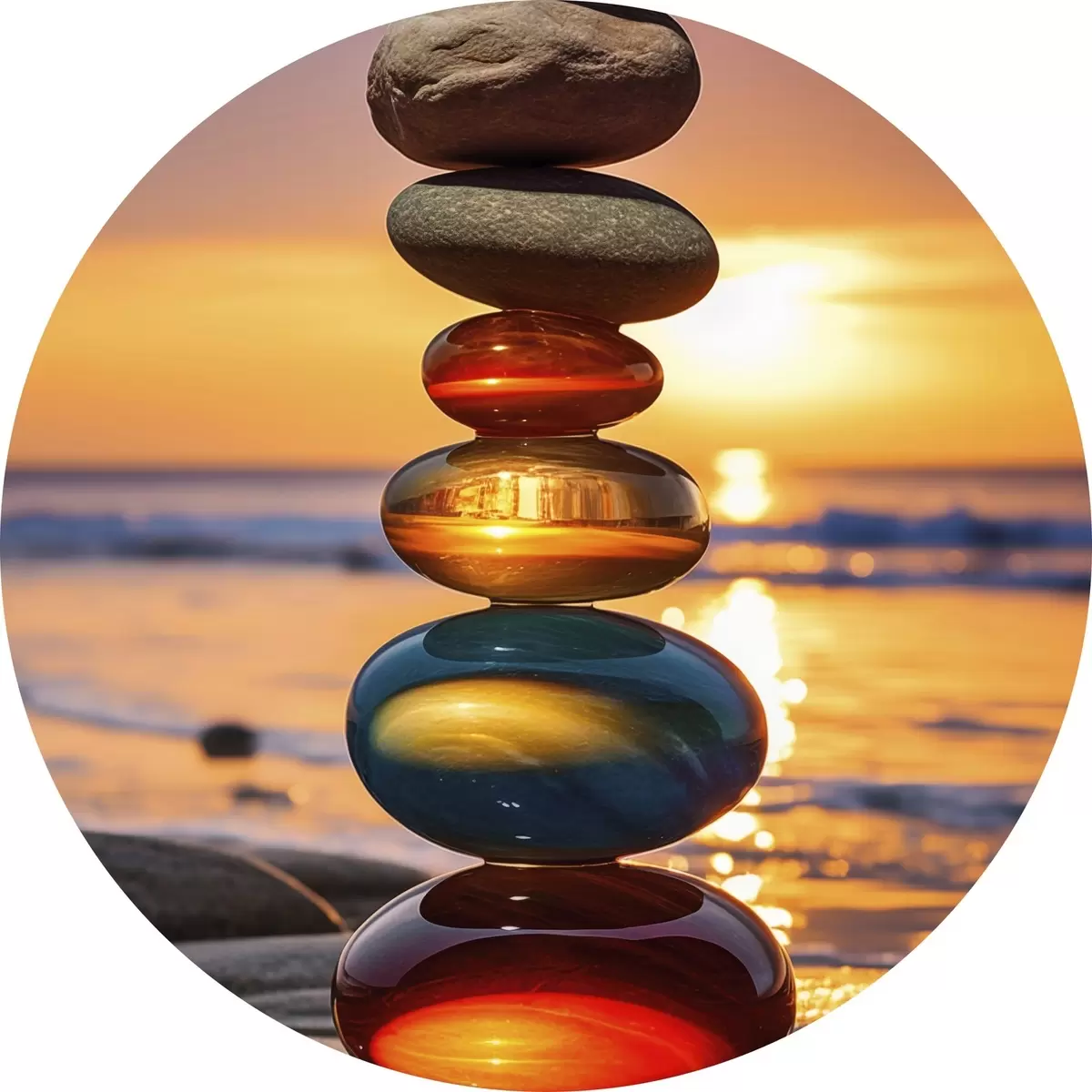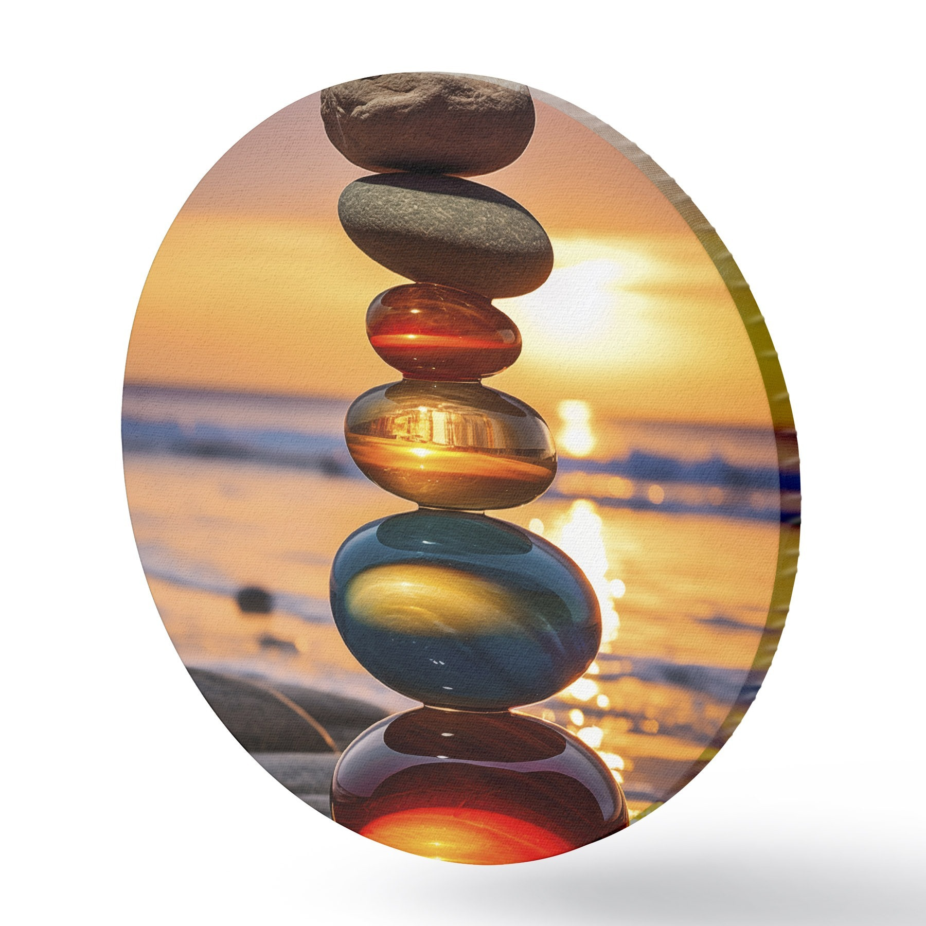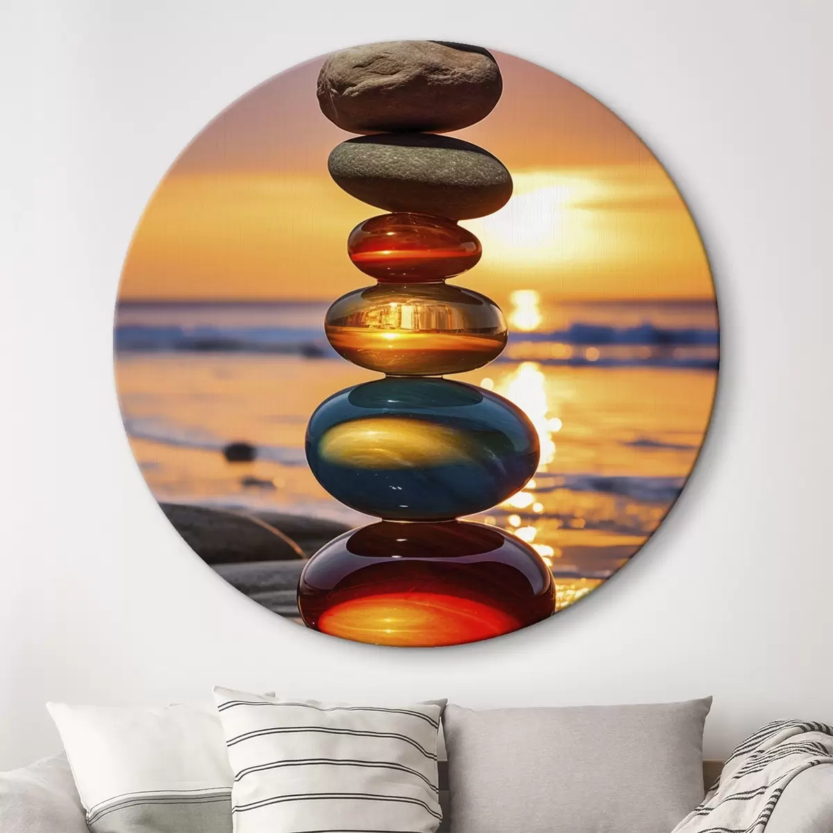 Cuadros redondos Piedras apiladas con la puesta de sol como telón de fondo r45520