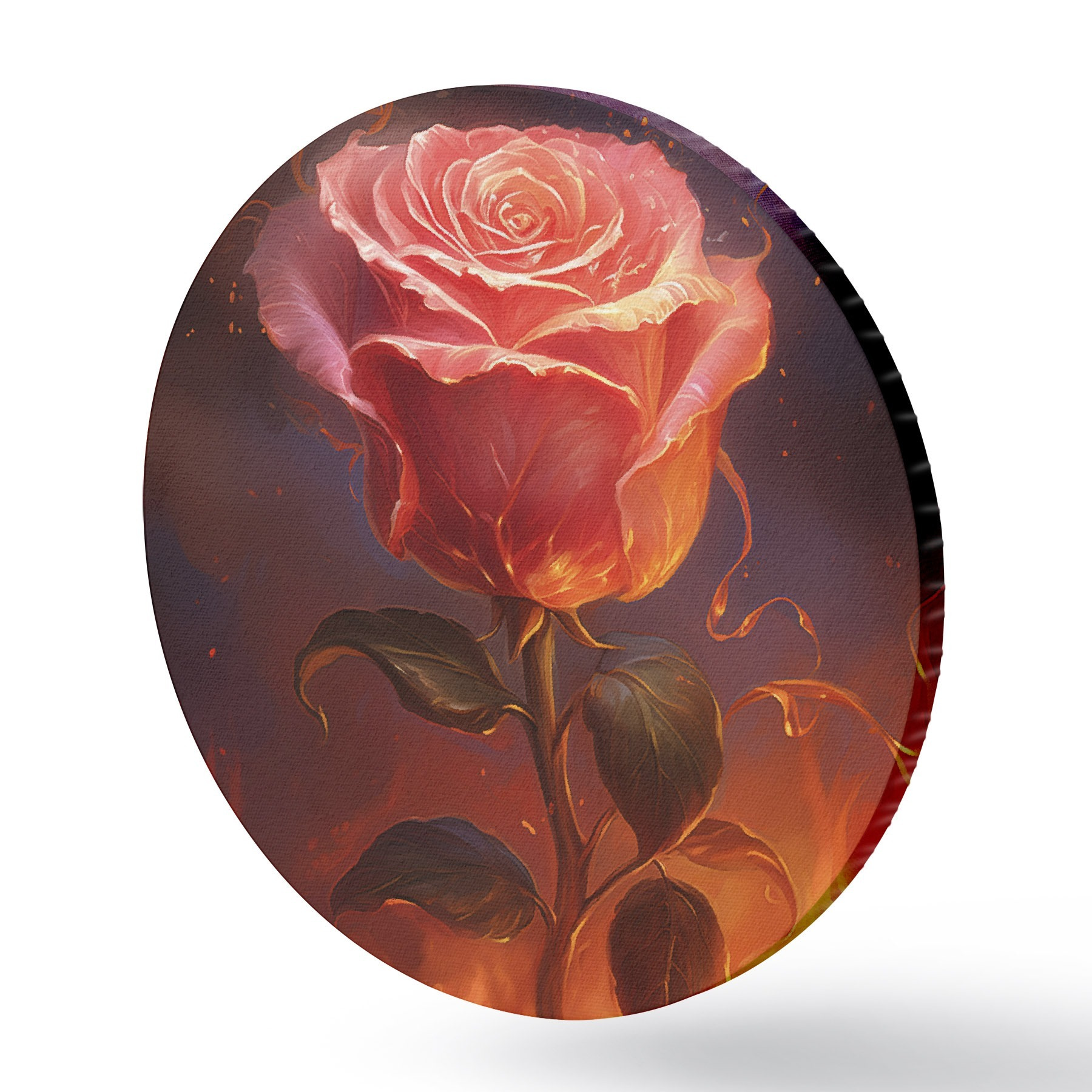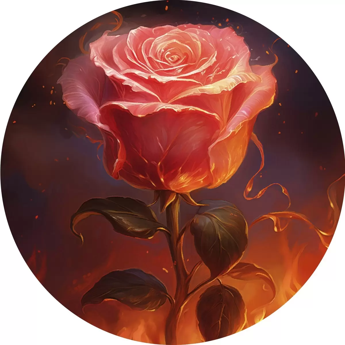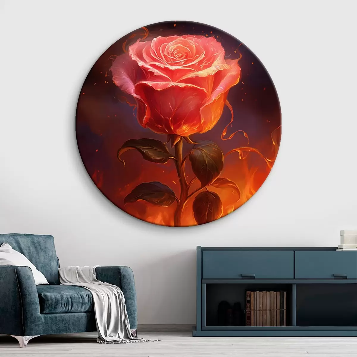 Cuadros redondos Rosa roja entre fuego y chispas r45523