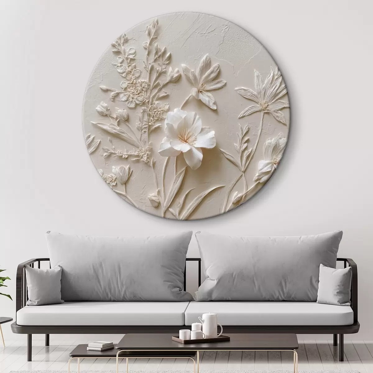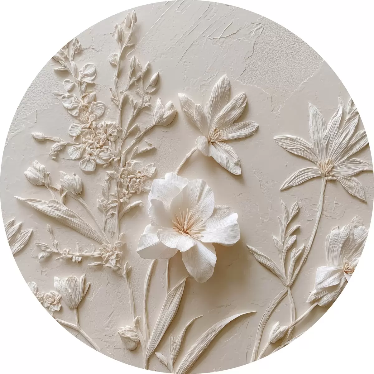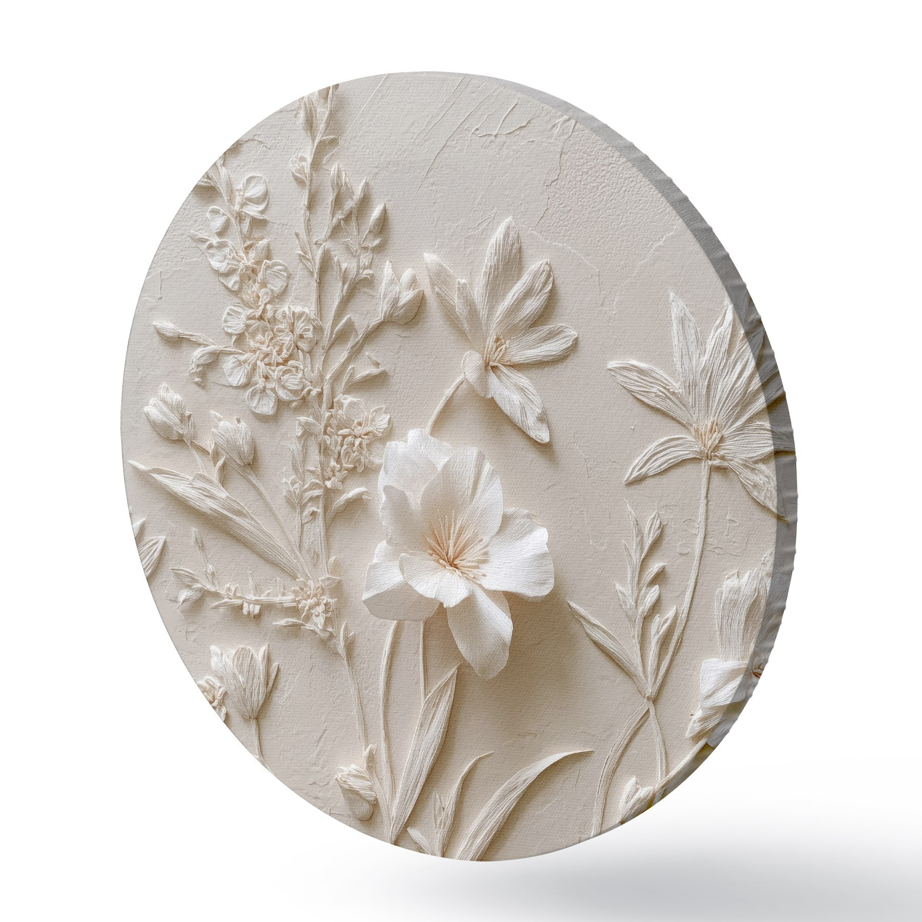 Cuadros redondos Motivo floral: estilo bajorrelieve con plantas sobre fondo claro r45536