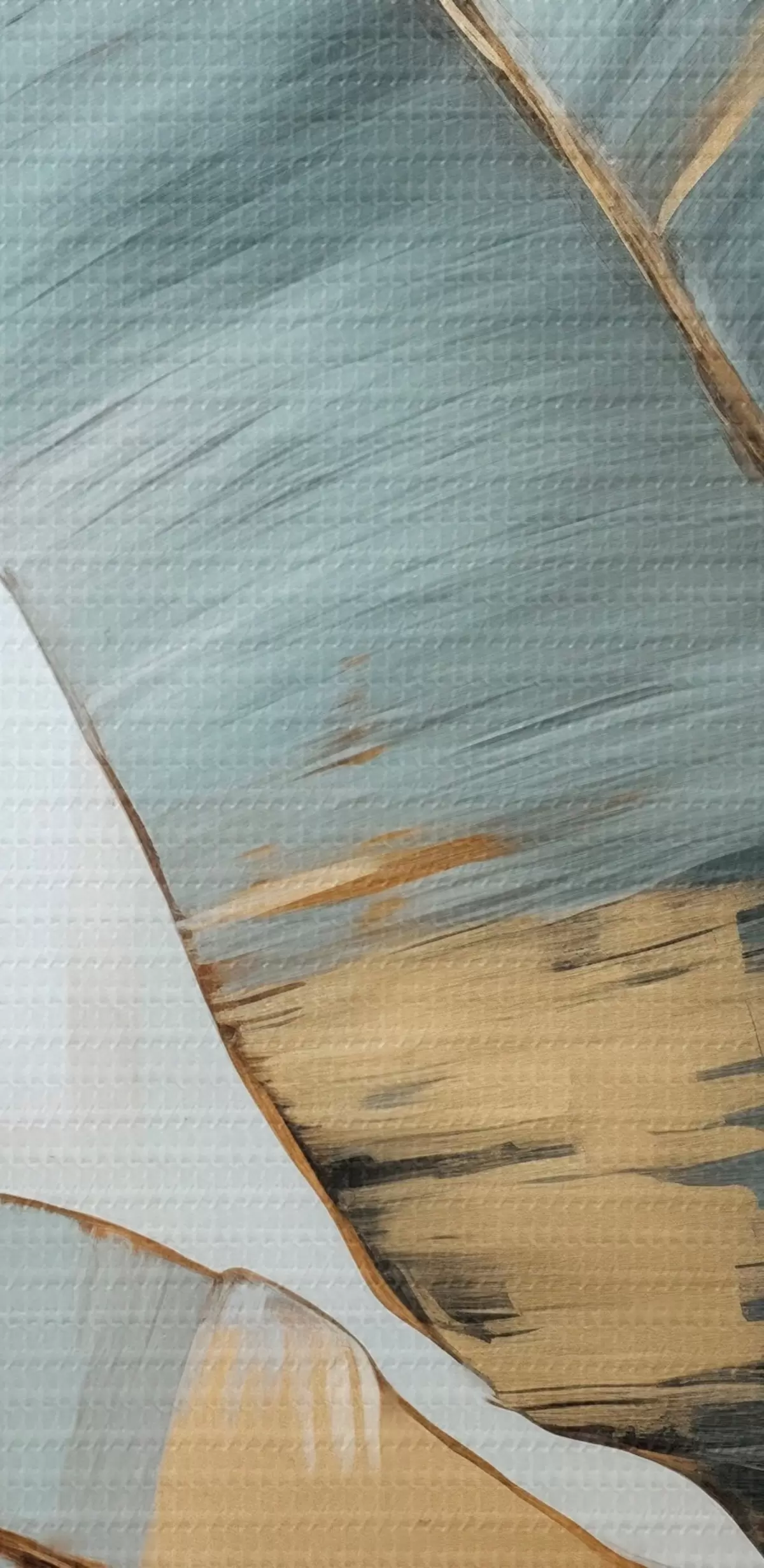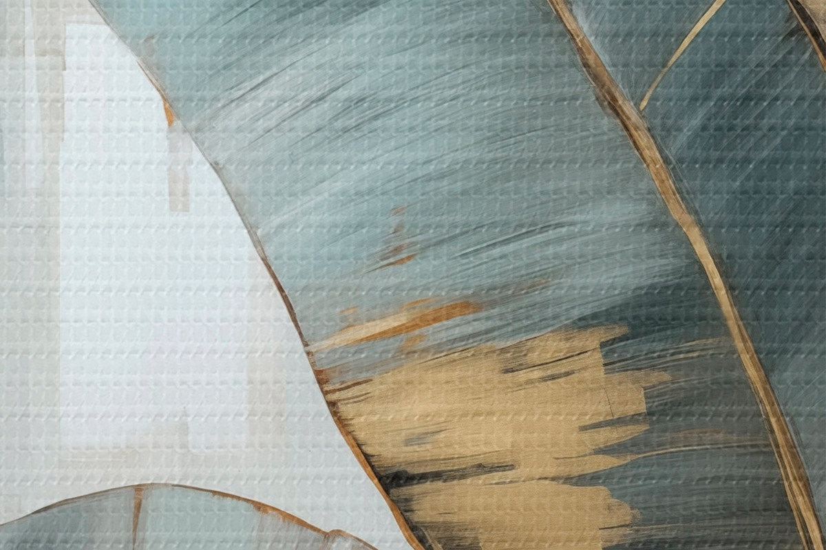 Foto Conjunto de hojas de plátano azules, grises y amarillas con pinceladas visibles, sobre un fondo blanco abstracto Nr r45551