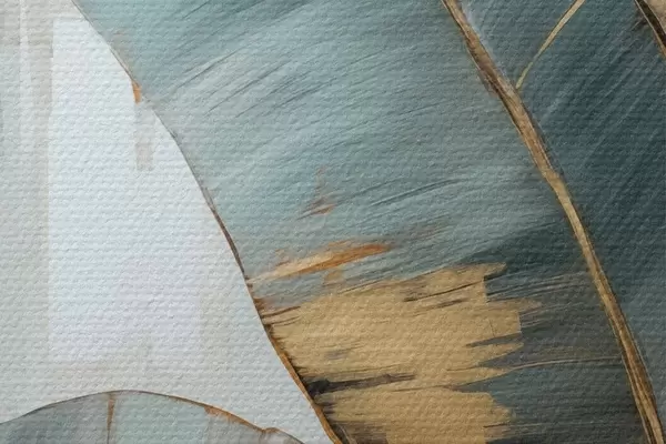 Foto Conjunto de hojas de plátano azules, grises y amarillas con pinceladas visibles, sobre un fondo blanco abstracto Nr r45551