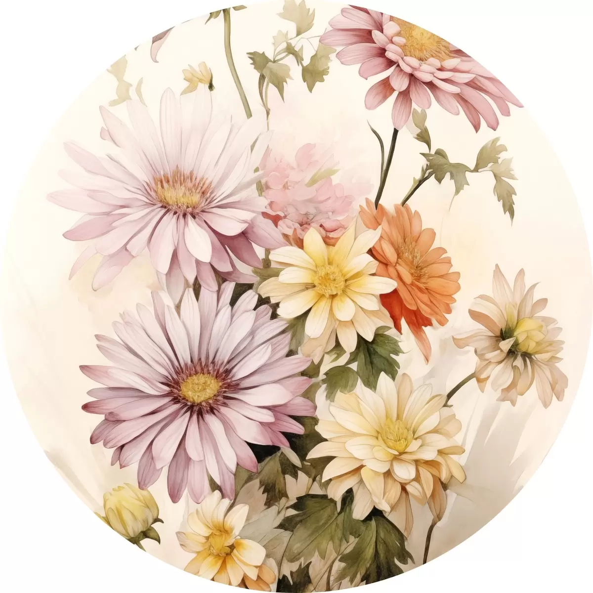 Cuadros redondos Un ramo de flores de colores, estilo acuarela suave, sobre un fondo claro r45559