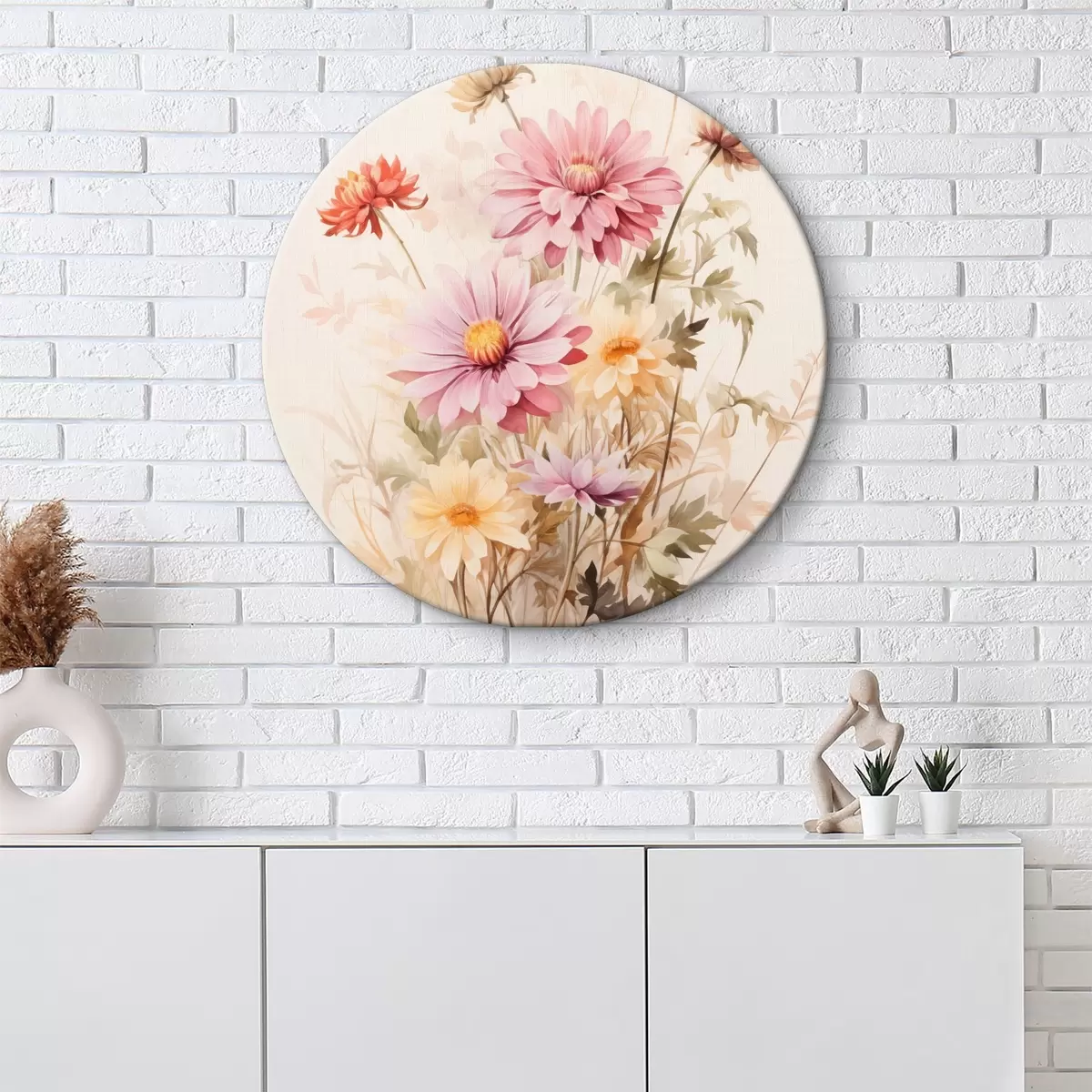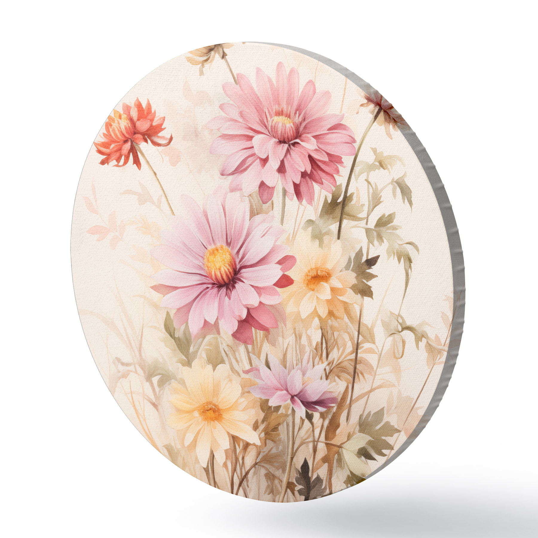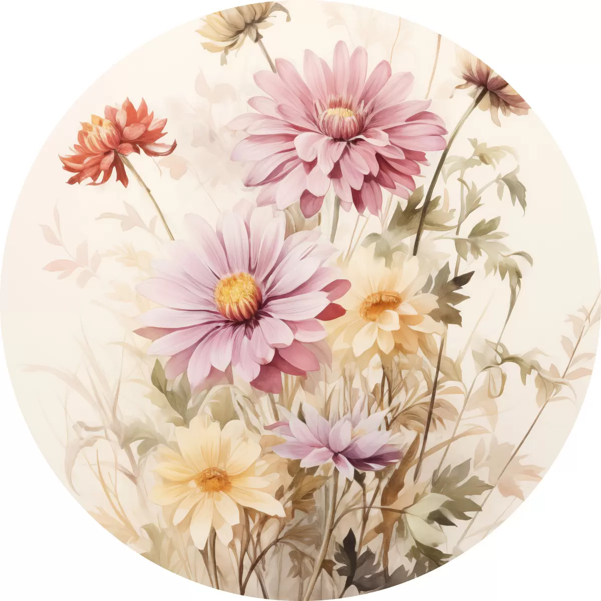 Cuadros redondos Un ramo de flores de colores, estilo acuarela suave, sobre un fondo claro, ilustración botánica r45560
