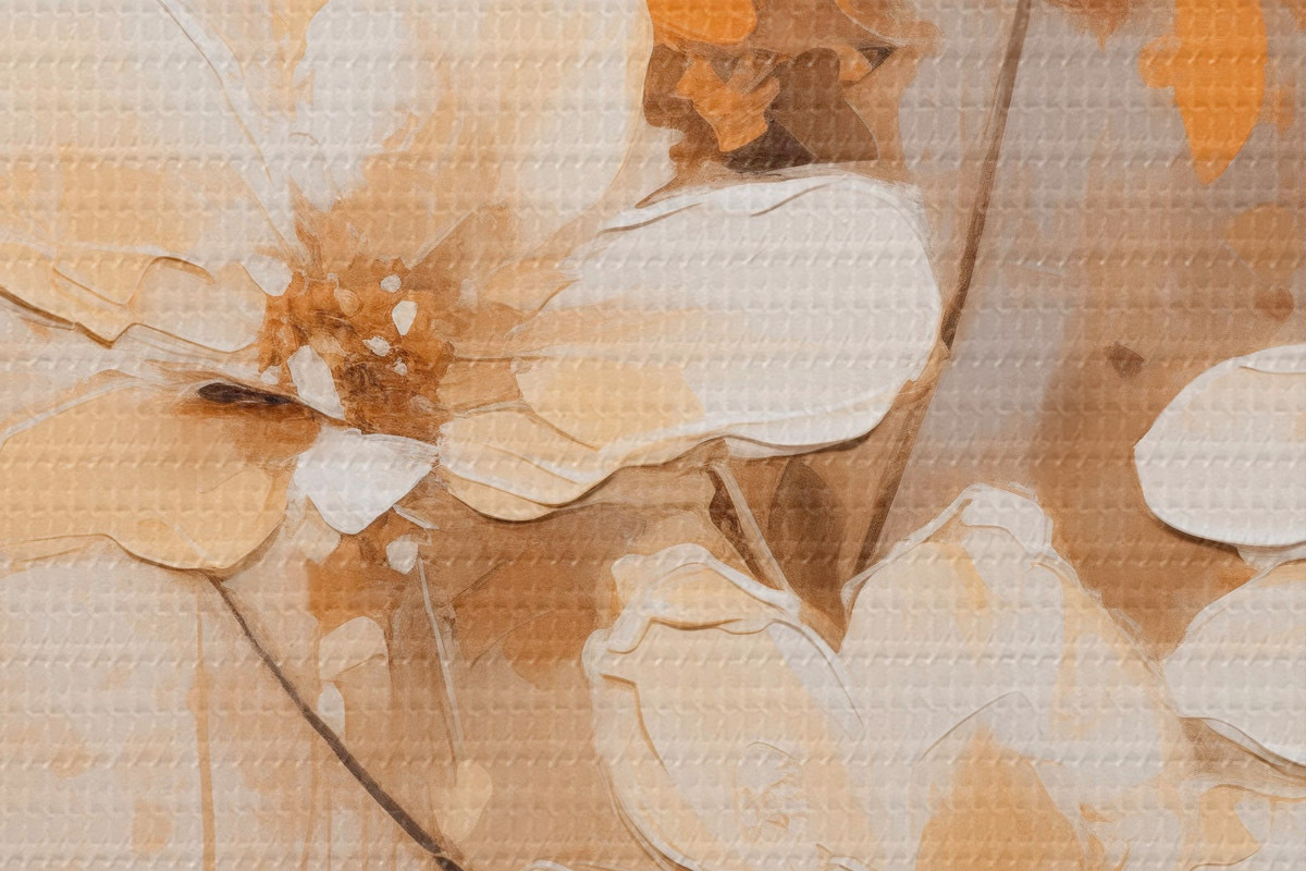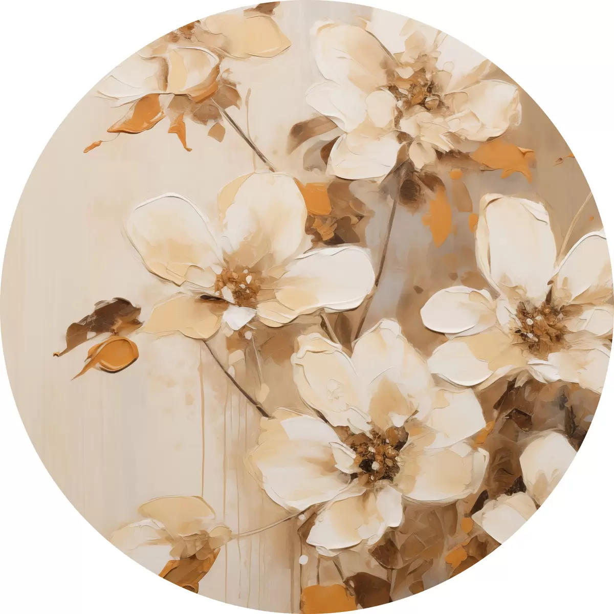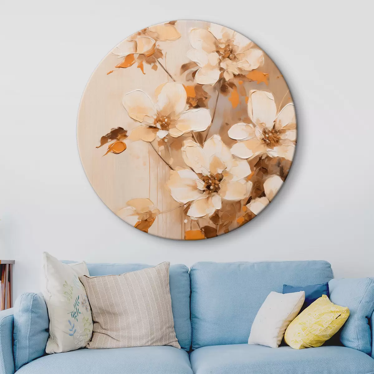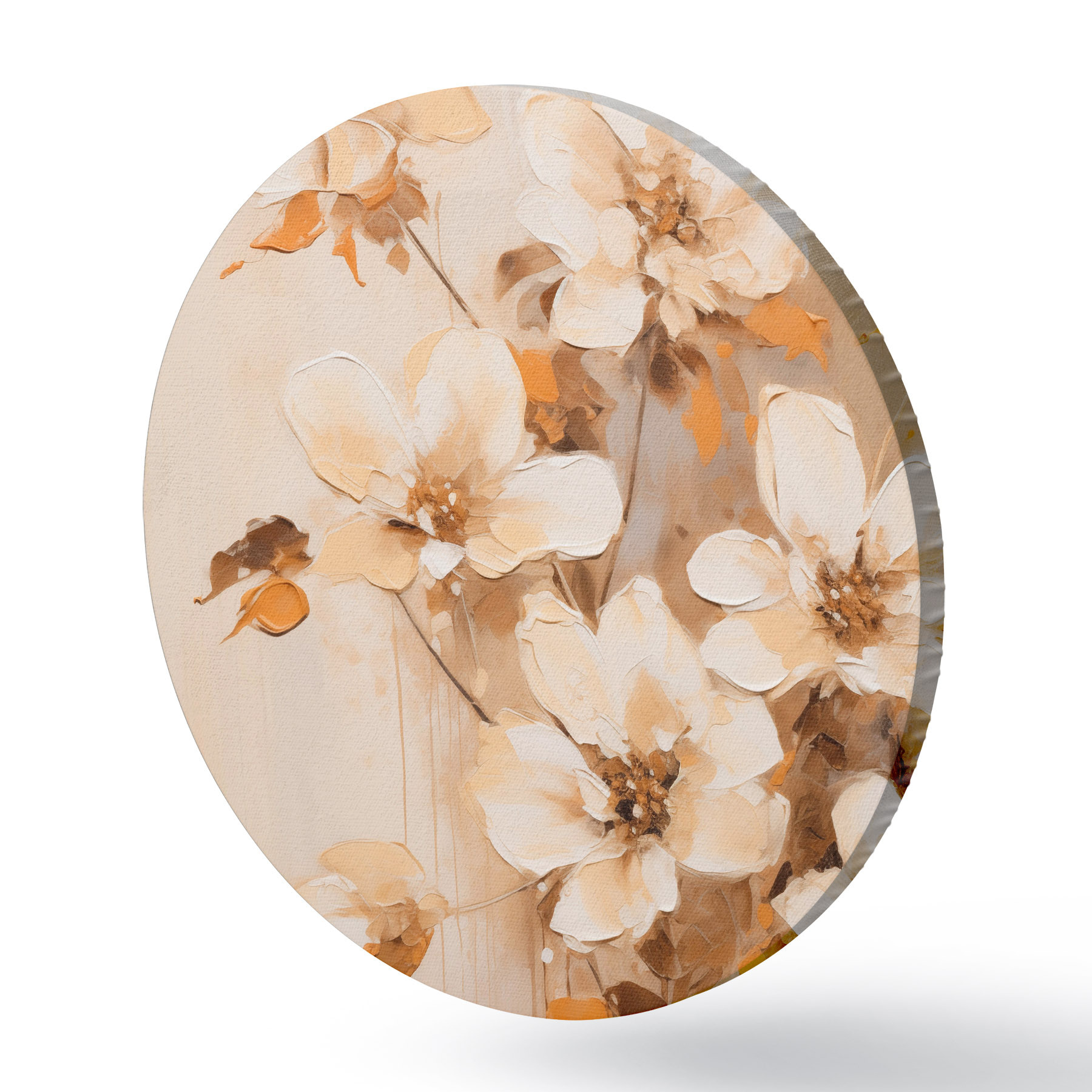 Cuadros redondos Flores blancas con hojas naranjas, delicadas pinceladas, arreglo floral, arte botánico r45574