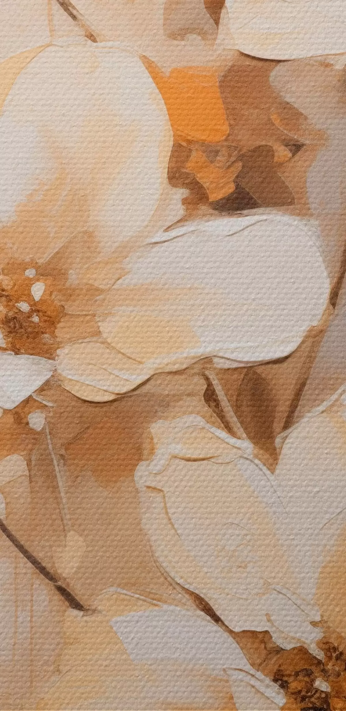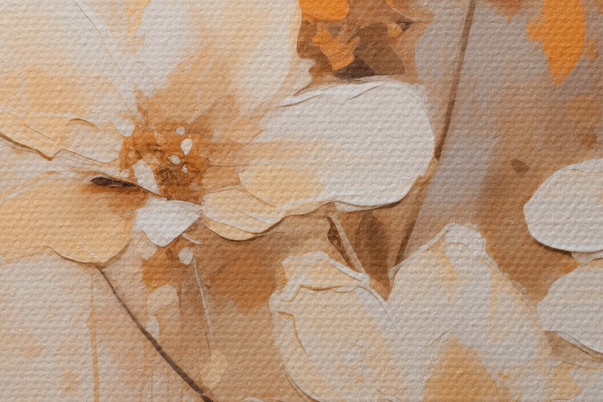 Foto Flores blancas con hojas naranjas, delicadas pinceladas, arreglo floral, arte botánico Nr r45574