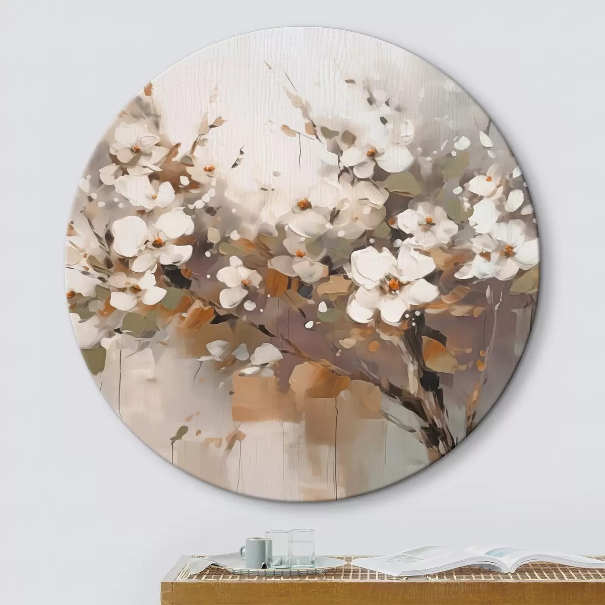 Cuadros redondos Rama abstracta con flores r45579