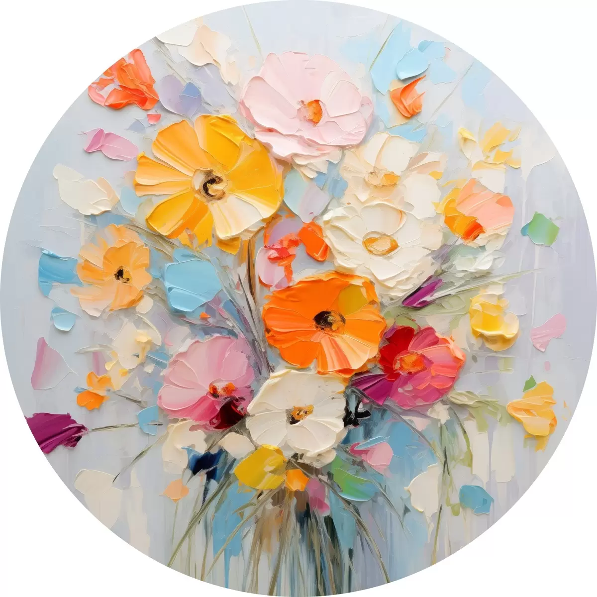 Cuadros redondos Motivo floral: ramo abstracto en tonos pastel r45599