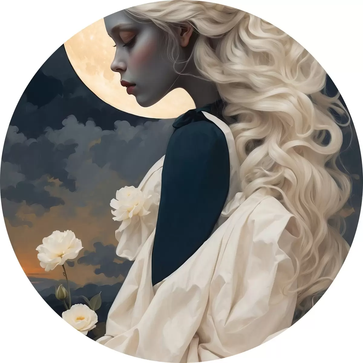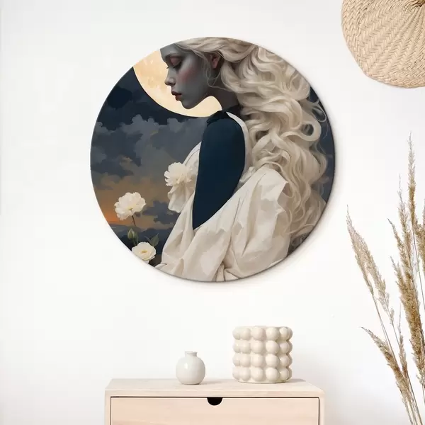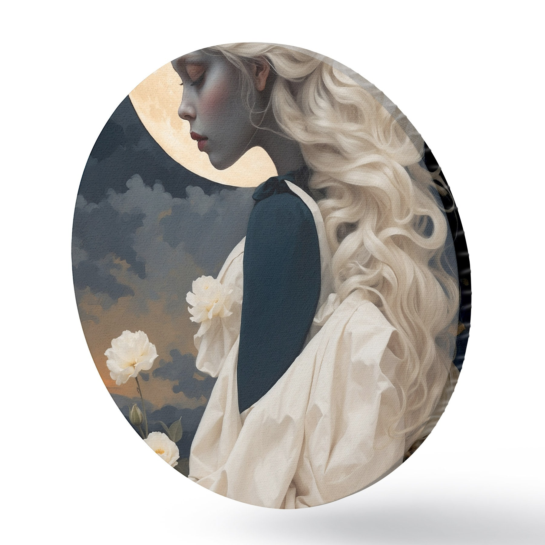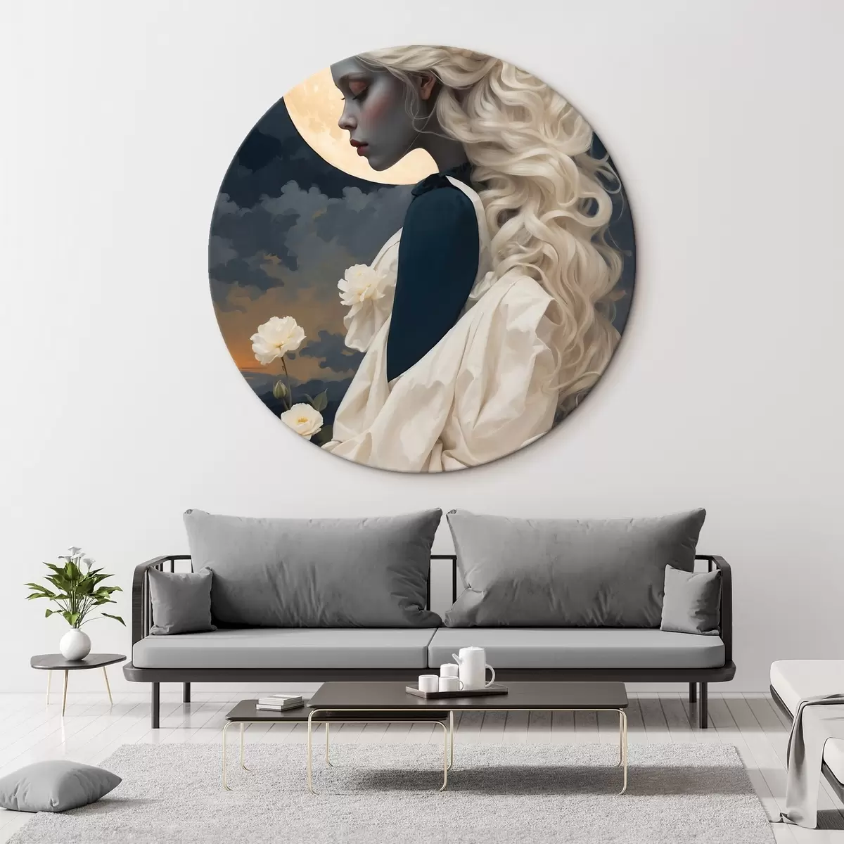 Cuadros redondos Mujer de pelo blanco bajo la luna r45622