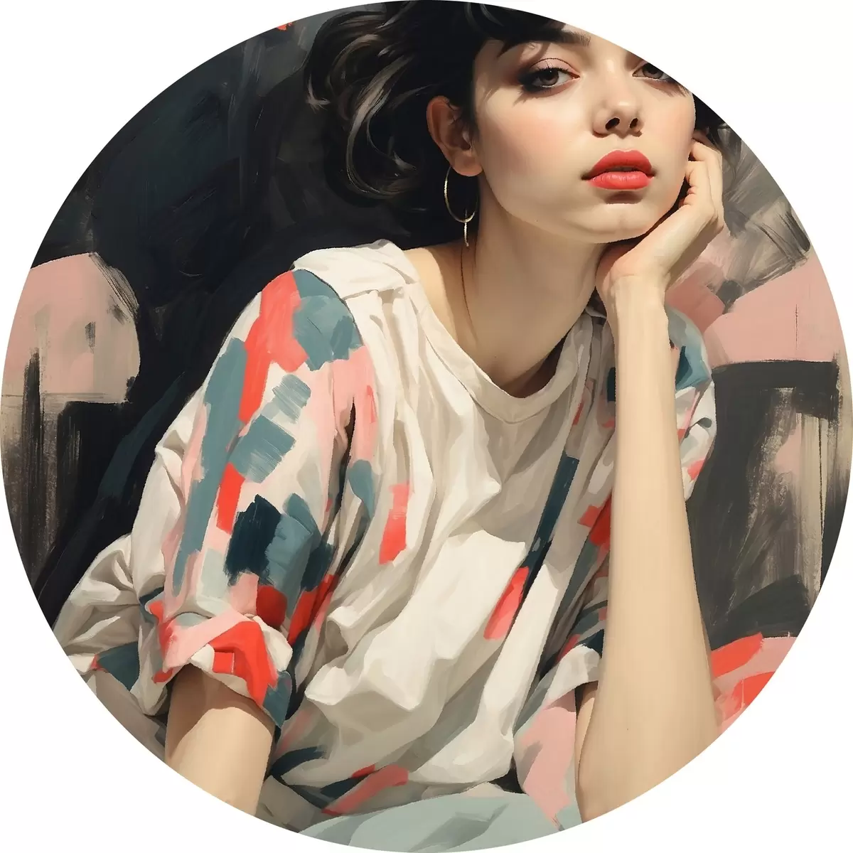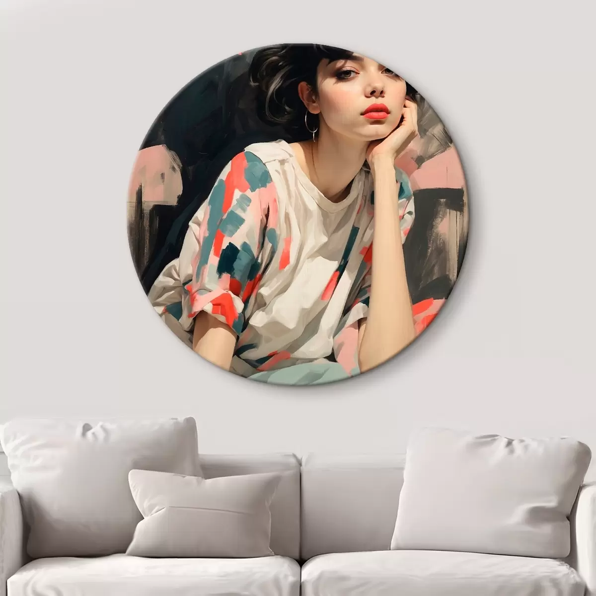 Cuadros redondos Retrato de niña sobre fondo con ojos y trazos abstractos r45623