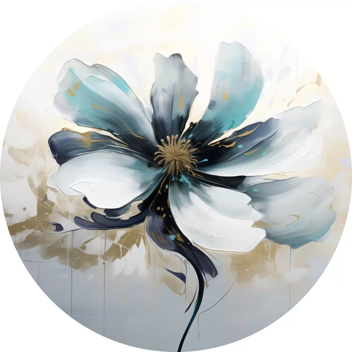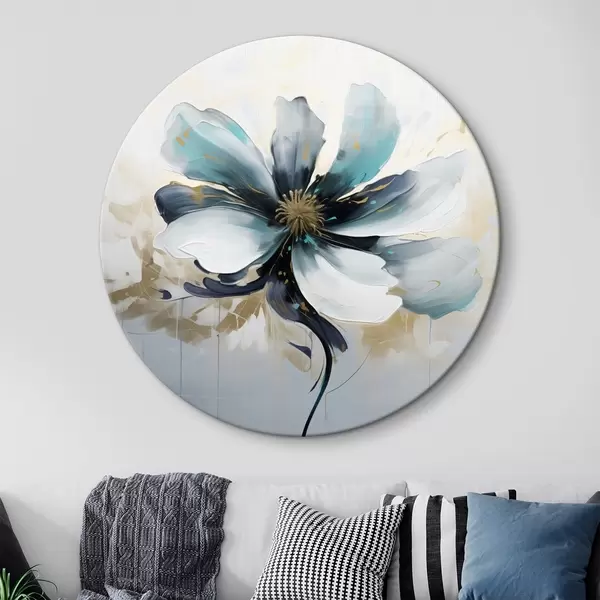 Cuadros redondos Flor turquesa al óleo r45641