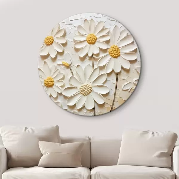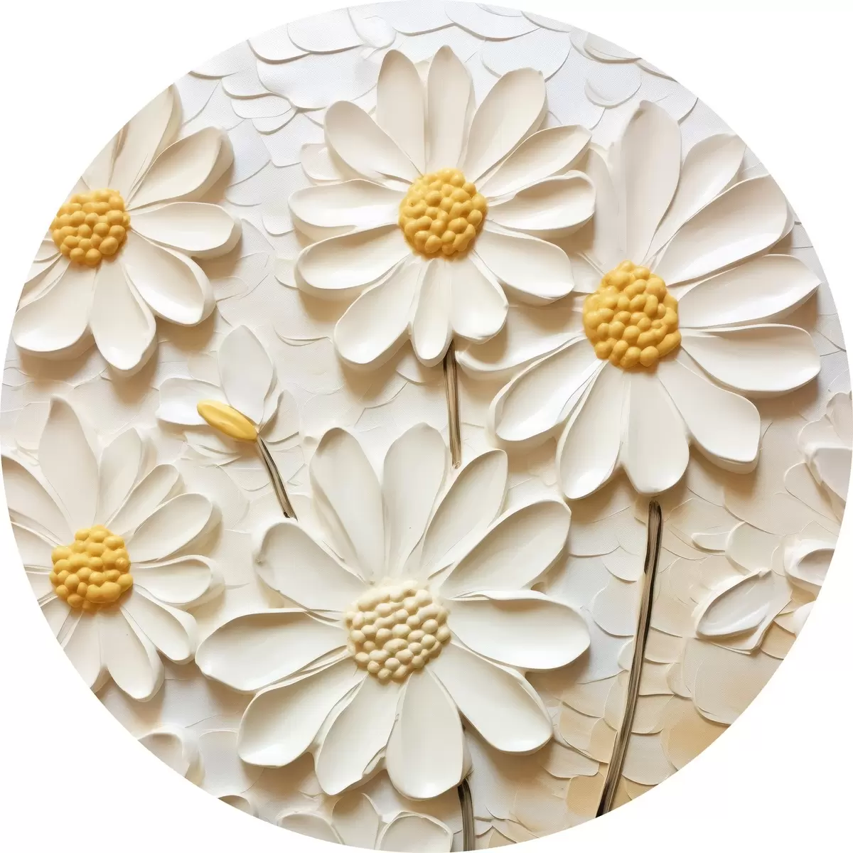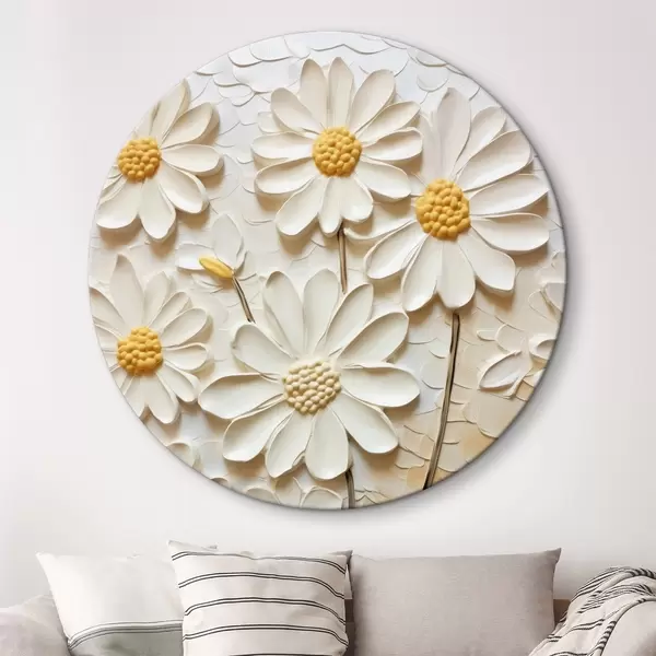 Cuadros redondos Margaritas en estilo impasto: pétalos blancos r45647