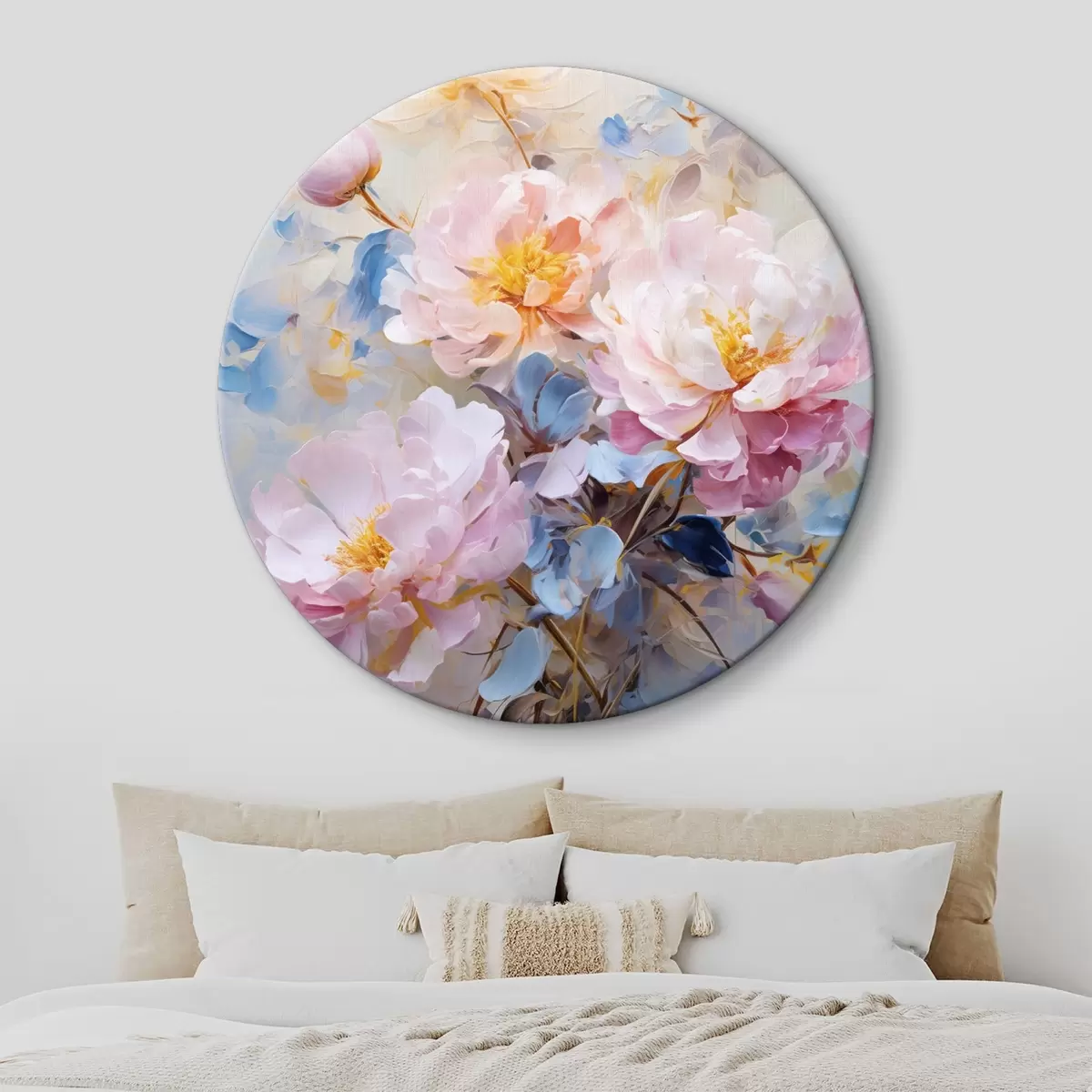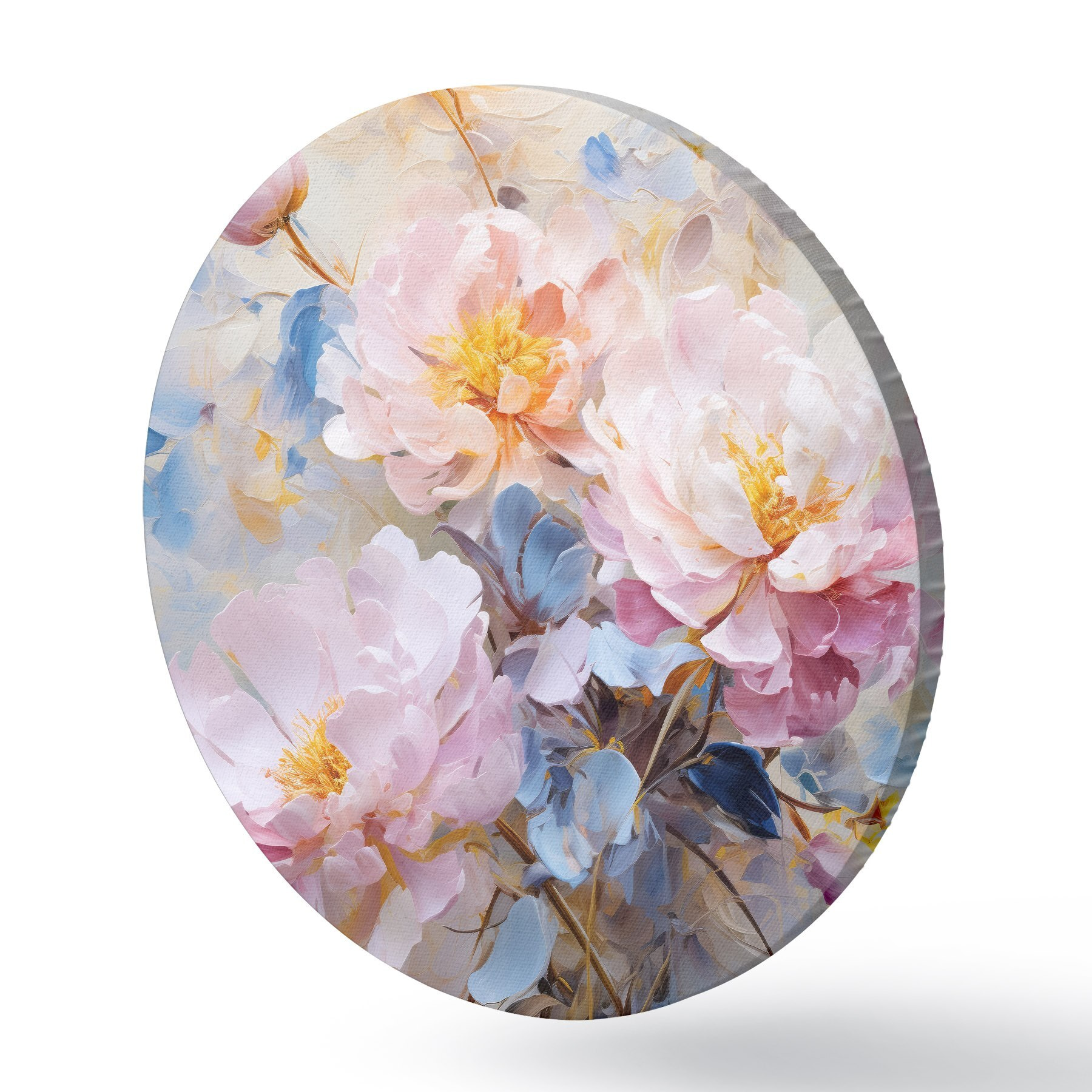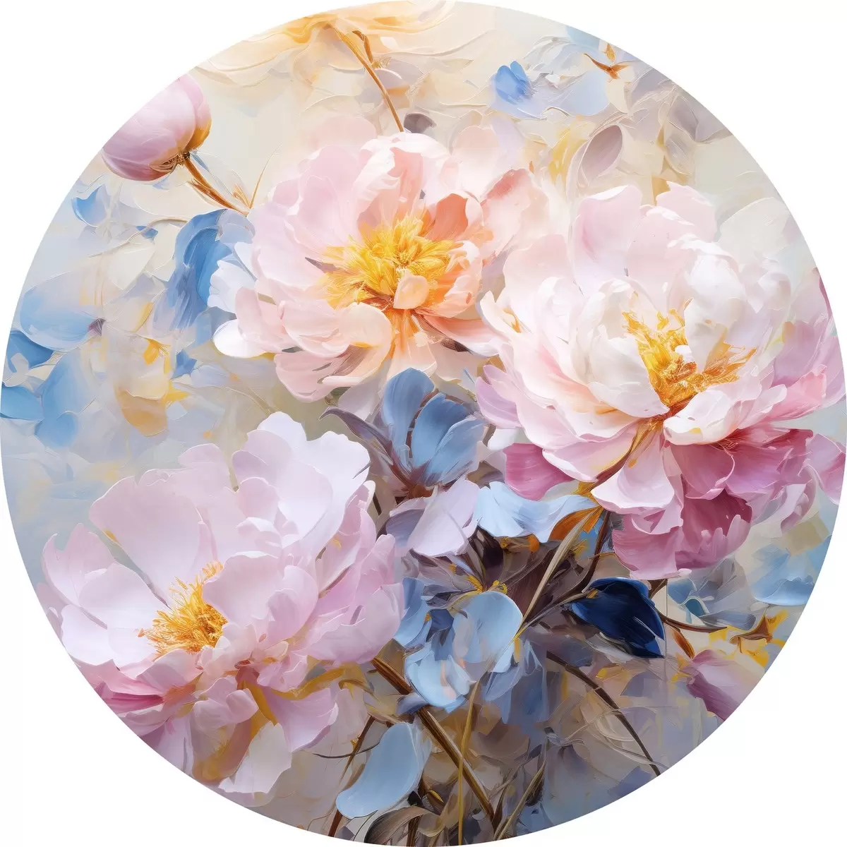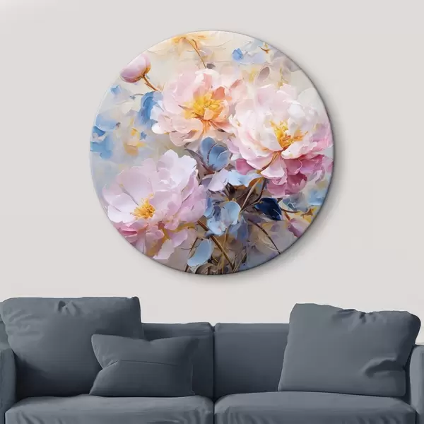 Cuadros redondos Flores abstractas: tonos rosas y azules r45652