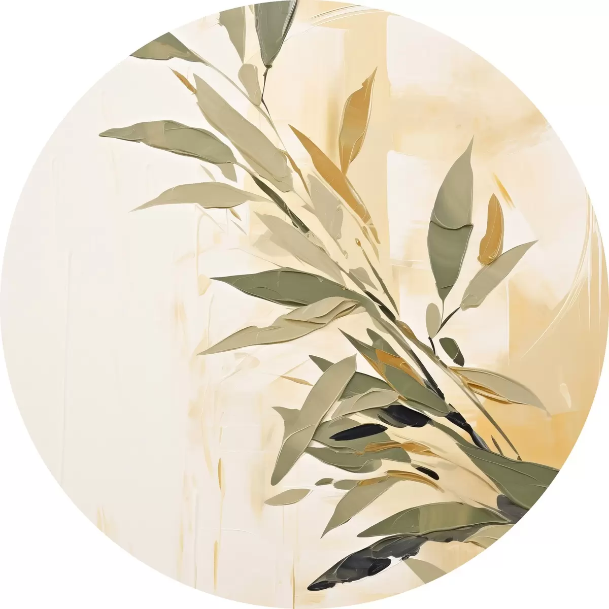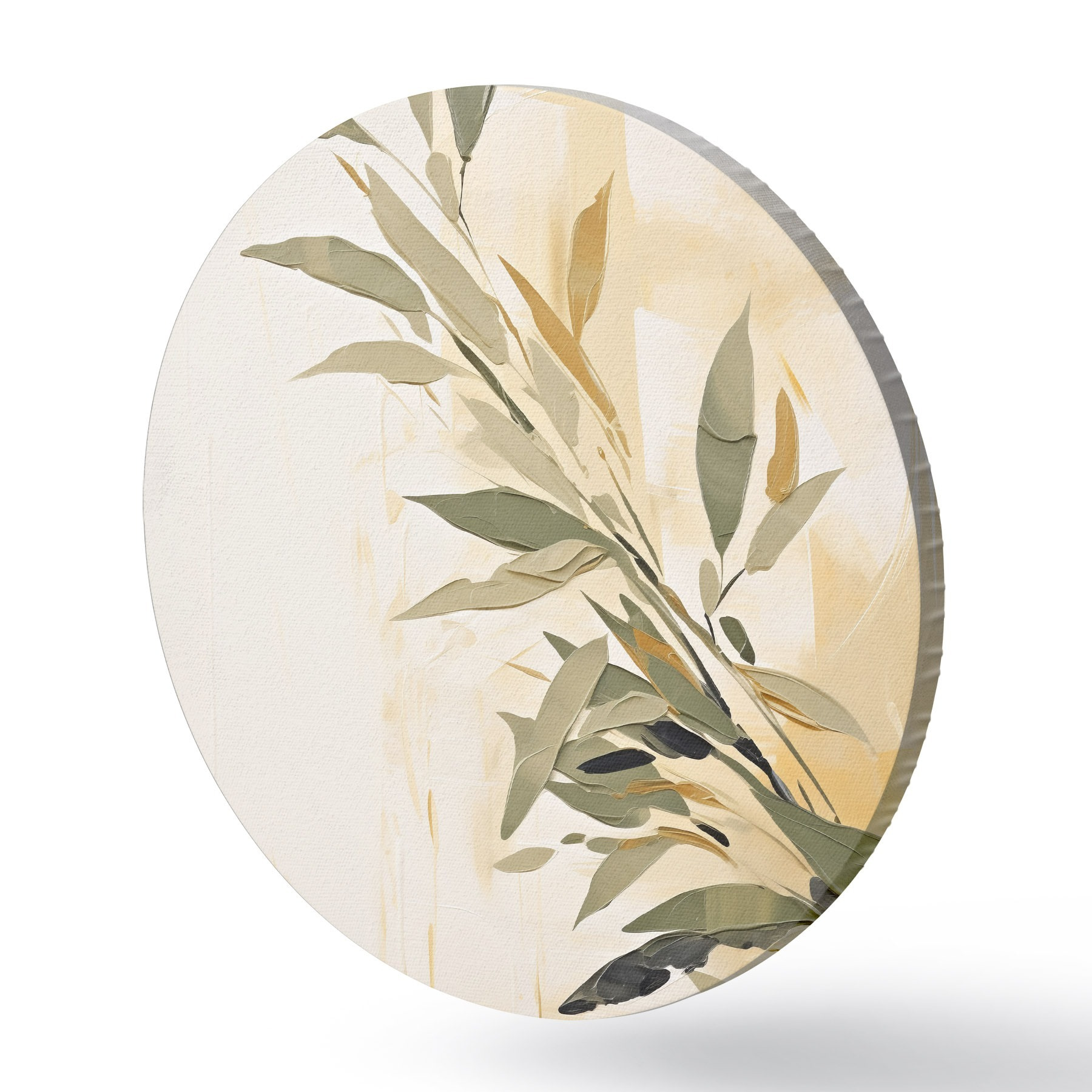 Cuadros redondos Rama botánica con hojas verdes sobre fondo cálido r45690