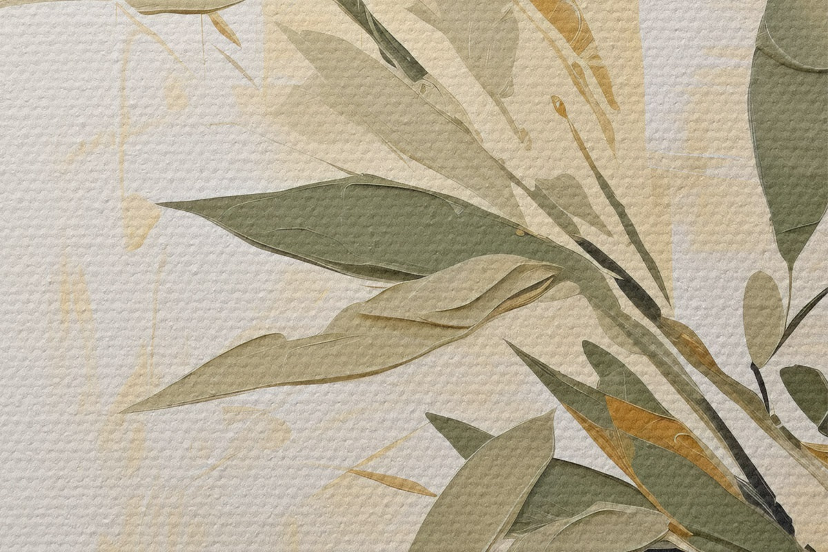 Foto Rama botánica con hojas verdes sobre fondo cálido Nr r45690