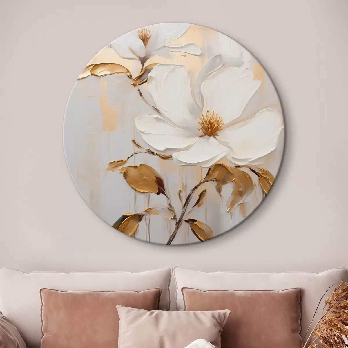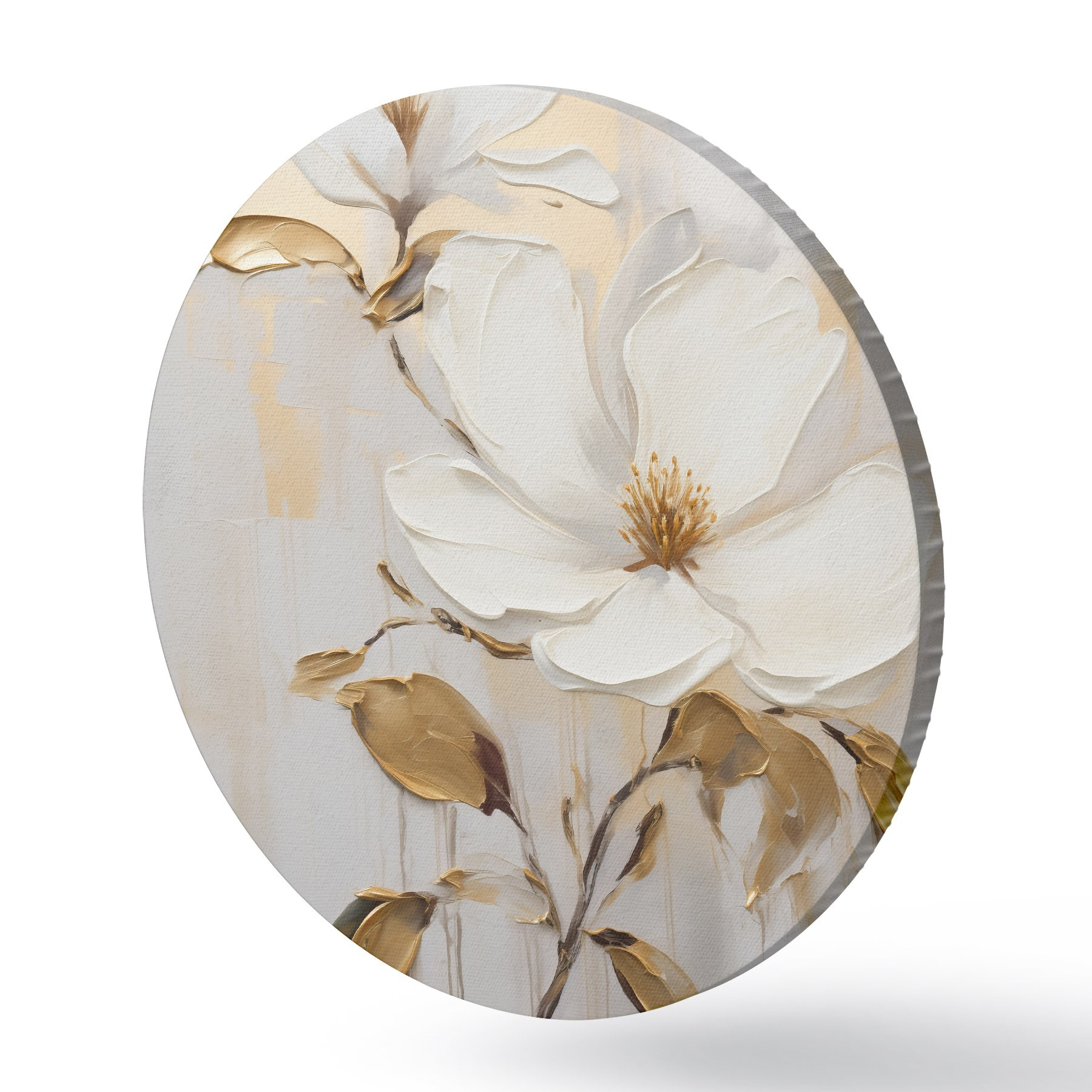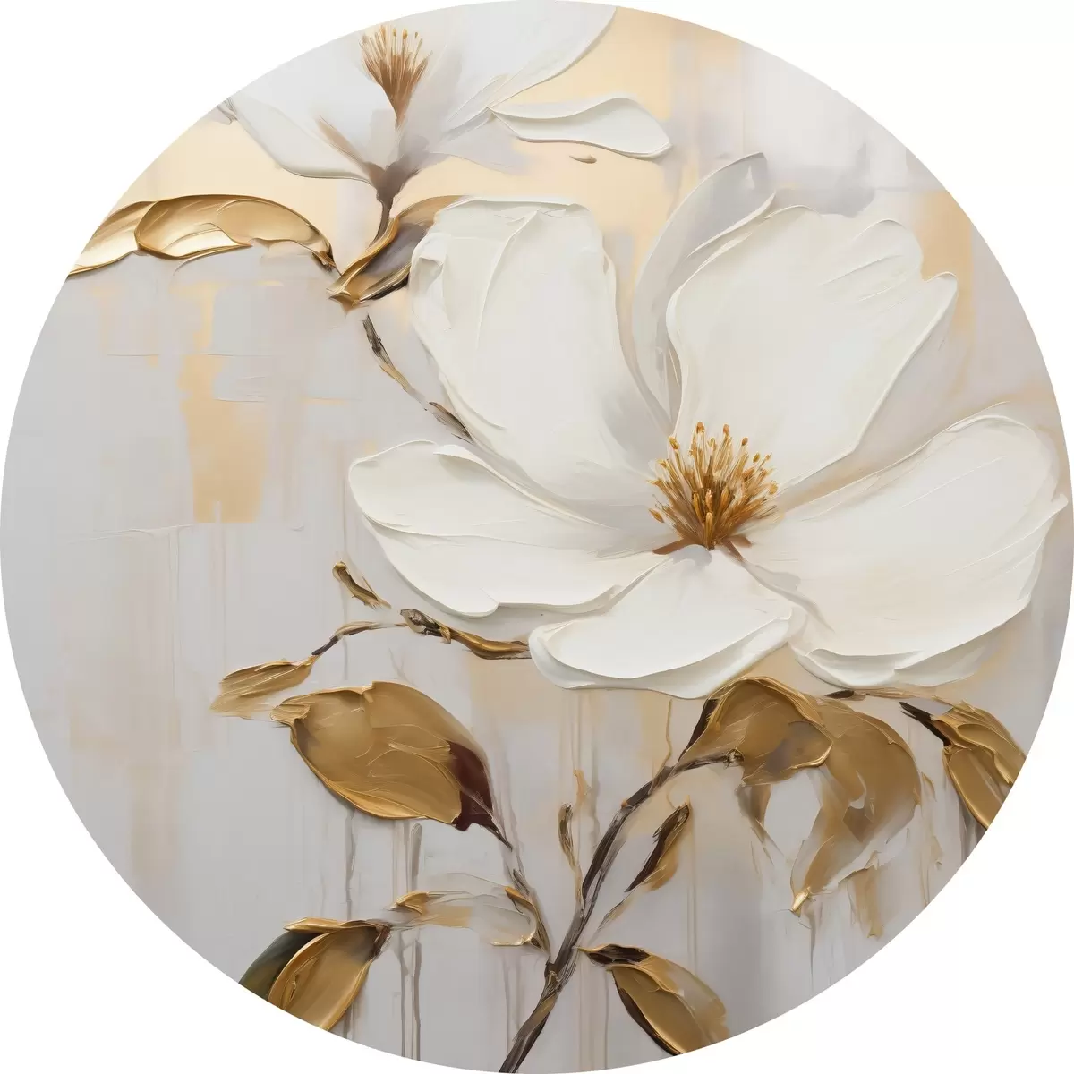 Cuadros redondos Dos flores blancas con hojas amarillo-naranja sobre fondo claro r45691