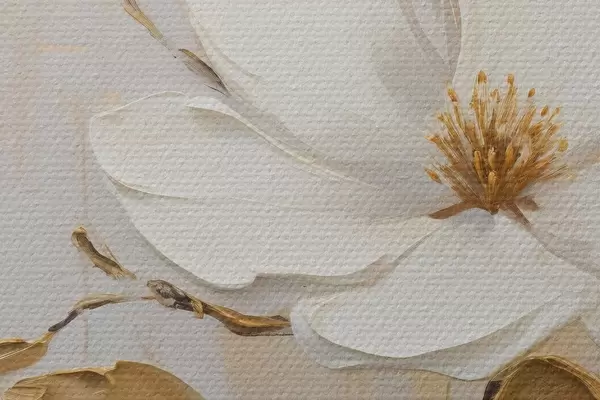 Foto Dos flores blancas con hojas amarillo-naranja sobre fondo claro Nr r45691