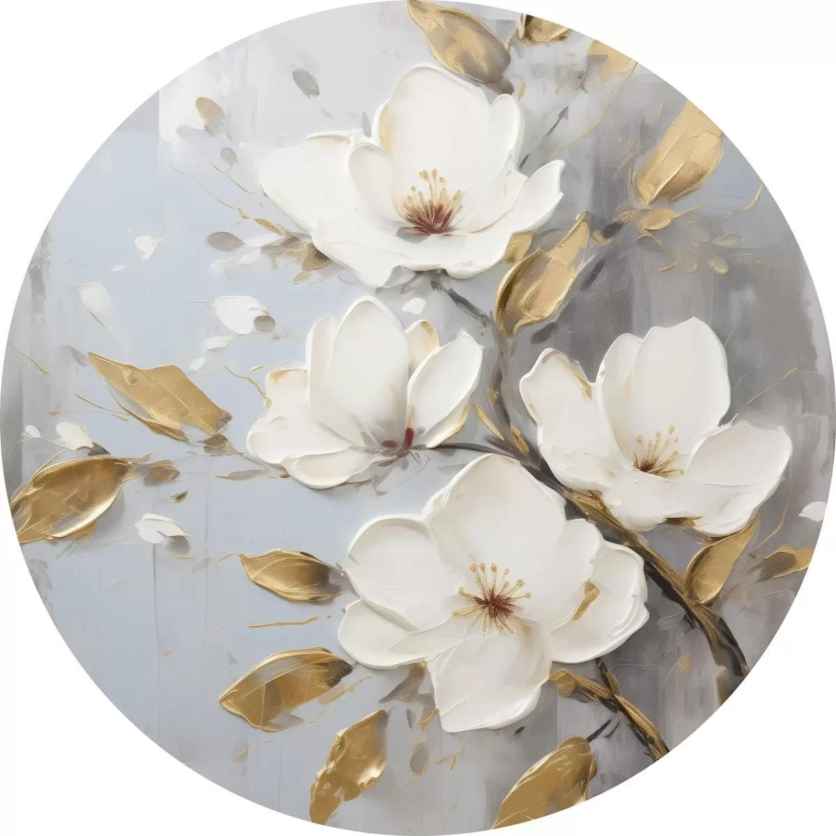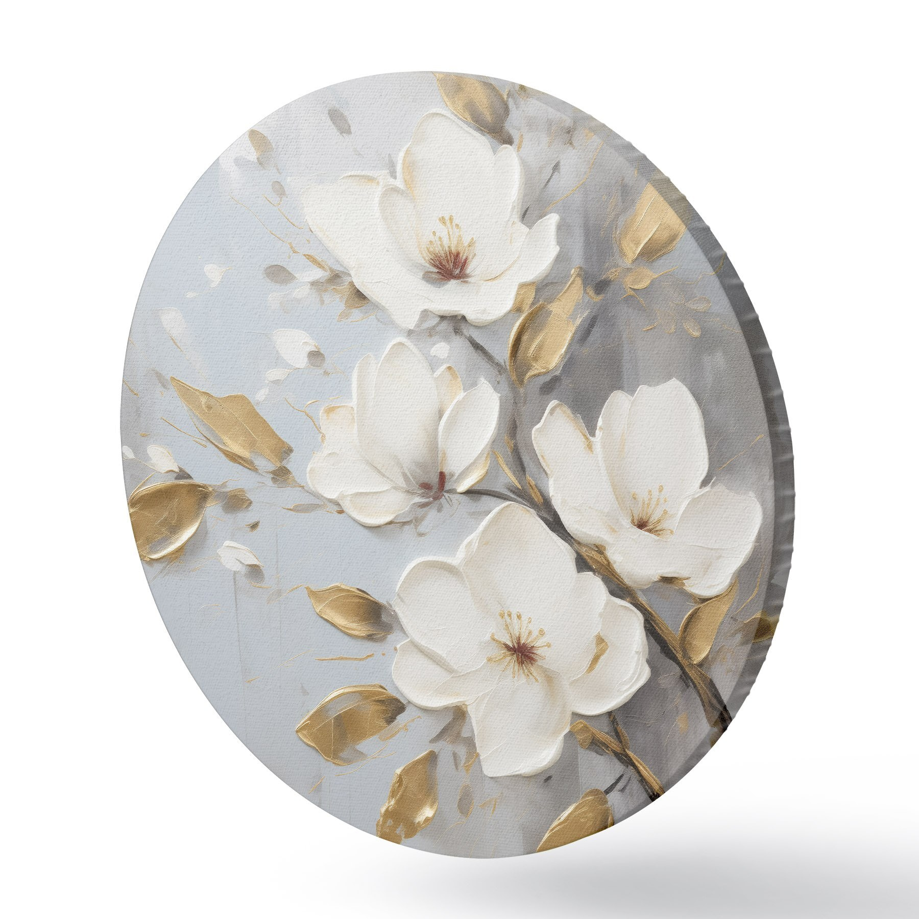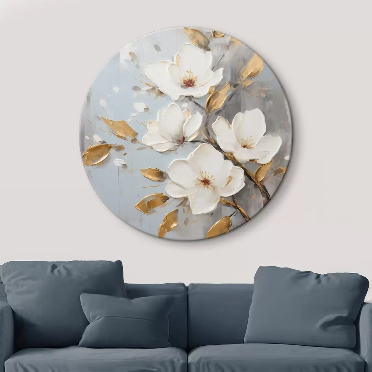 Cuadros redondos Rama con flores blancas y hojas amarillo anaranjadas r45692