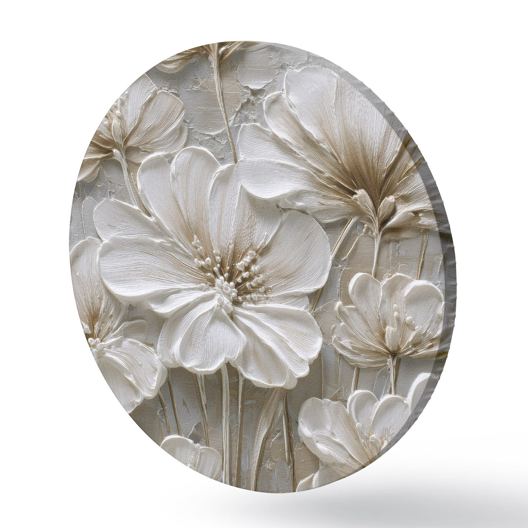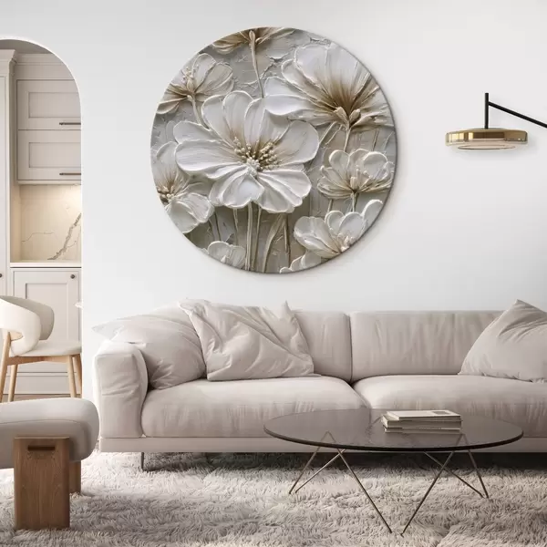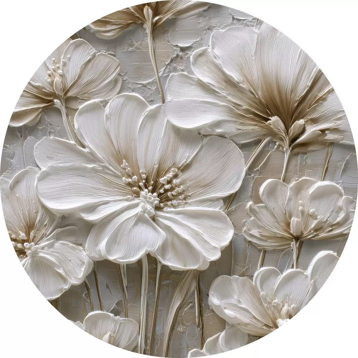 Cuadros redondos flores de crema con estilo impasto imitado r45712