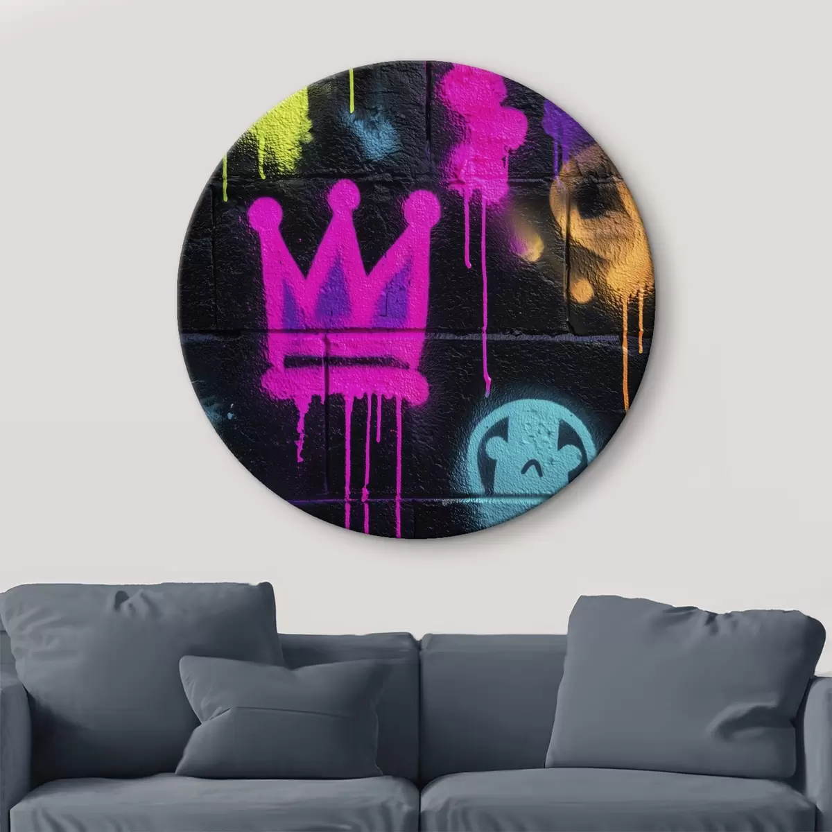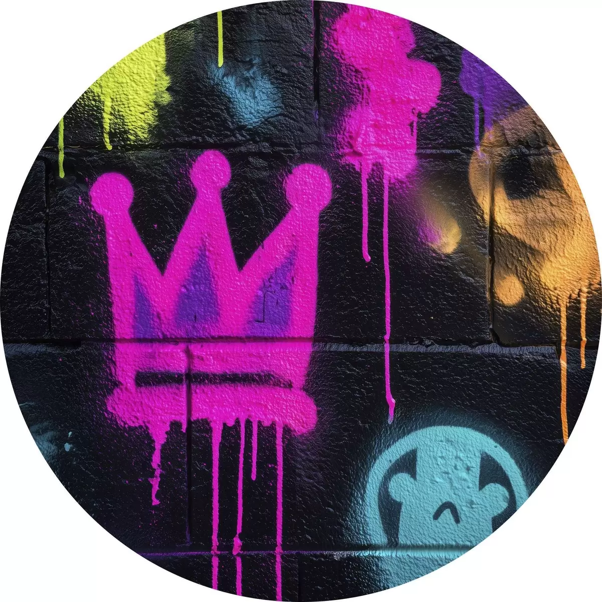 Cuadros redondos graffiti urbano brillante sobre fondo oscuro r45717