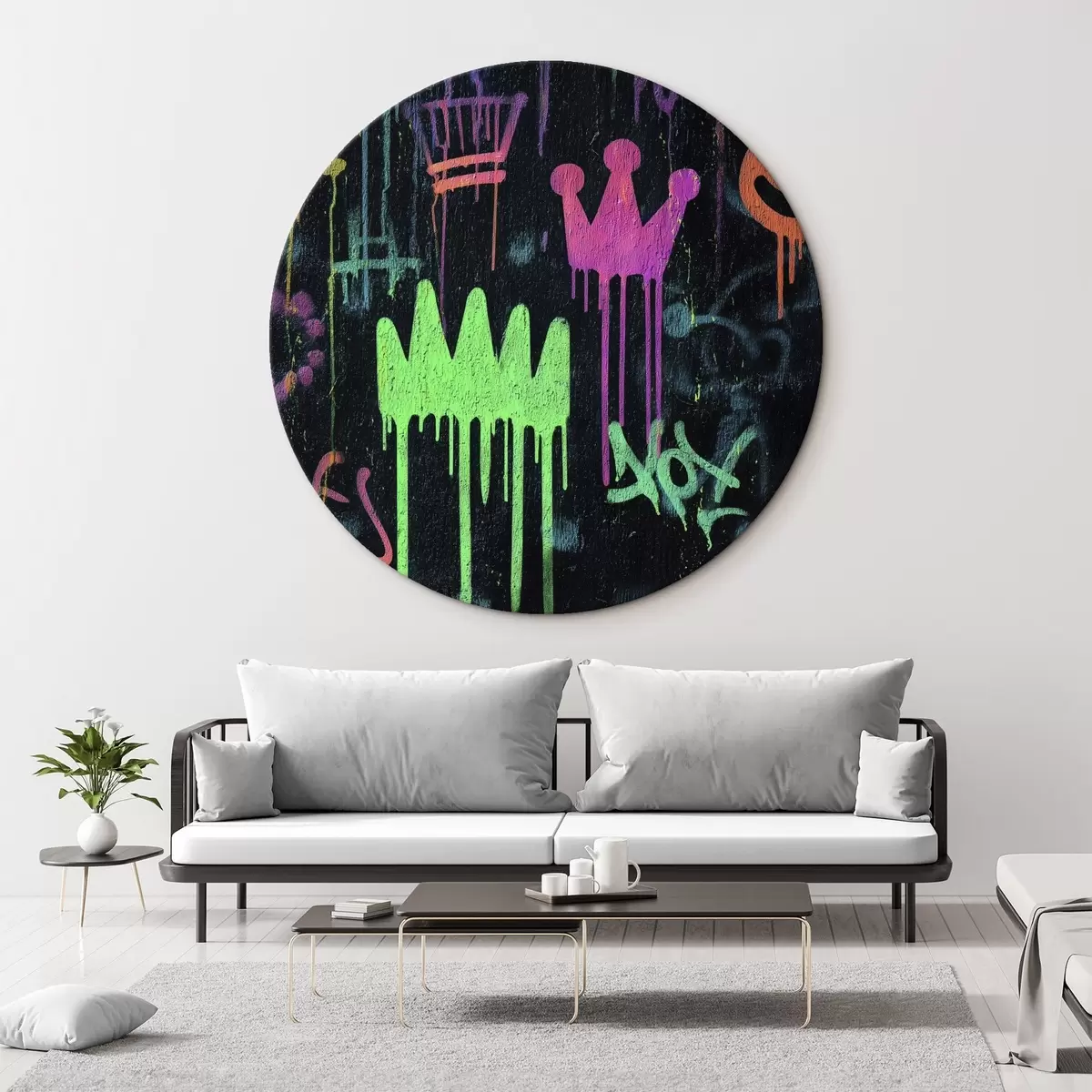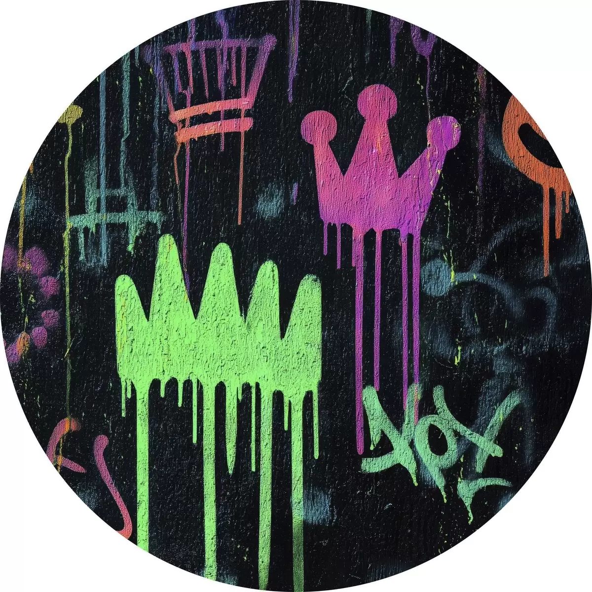 Cuadros redondos graffiti urbano brillante sobre fondo oscuro r45718