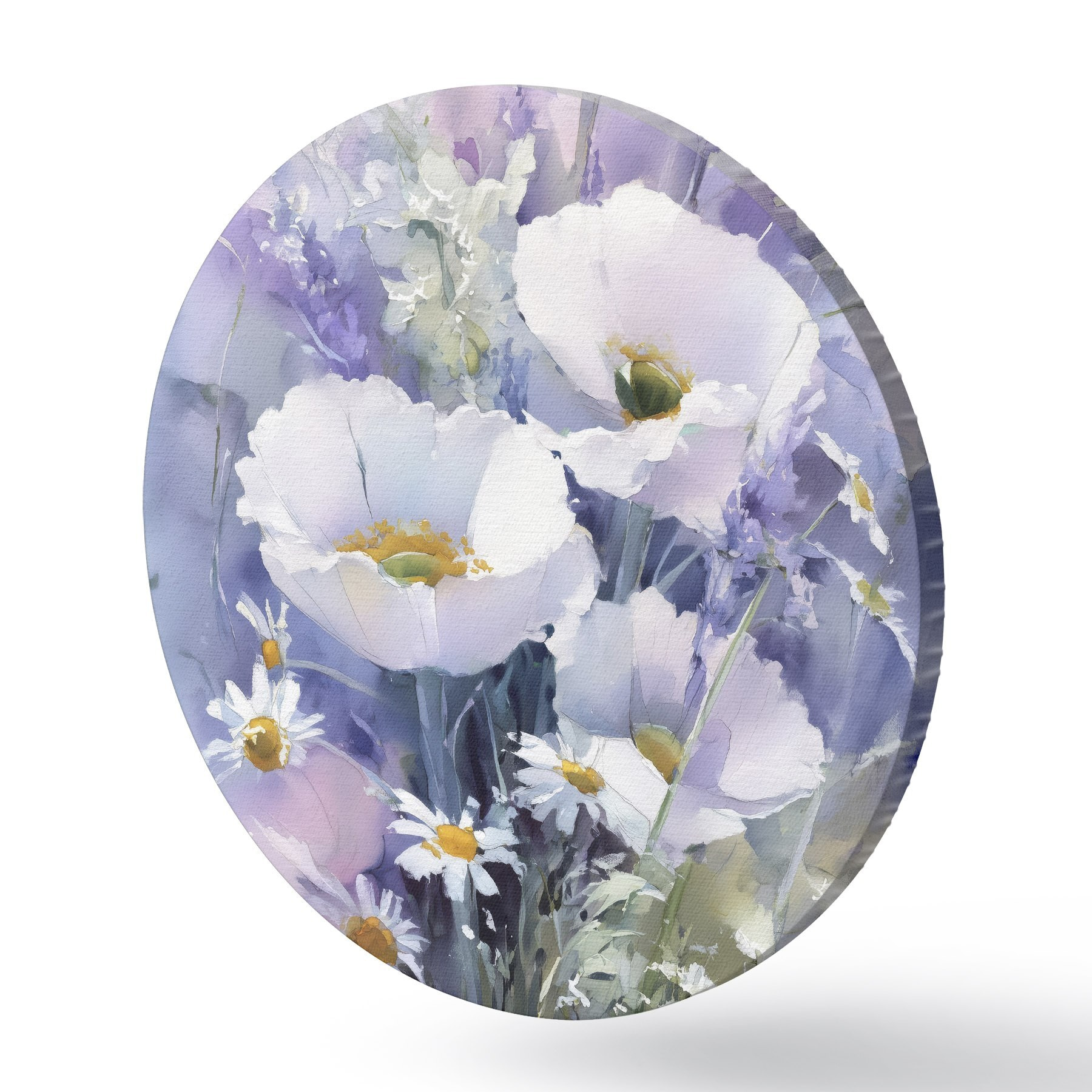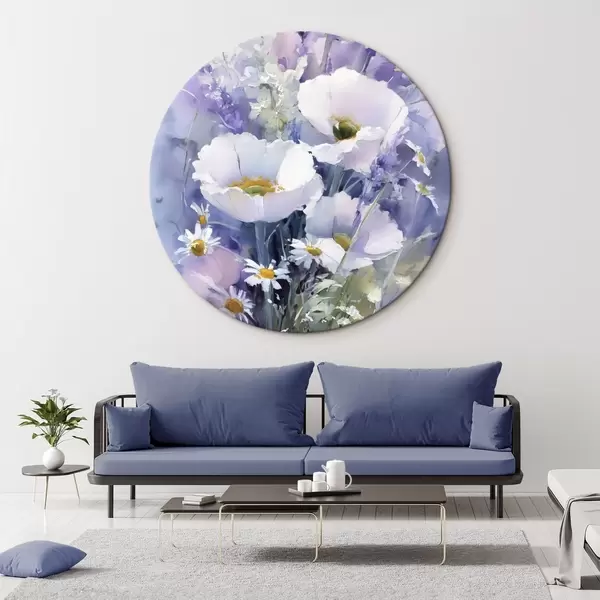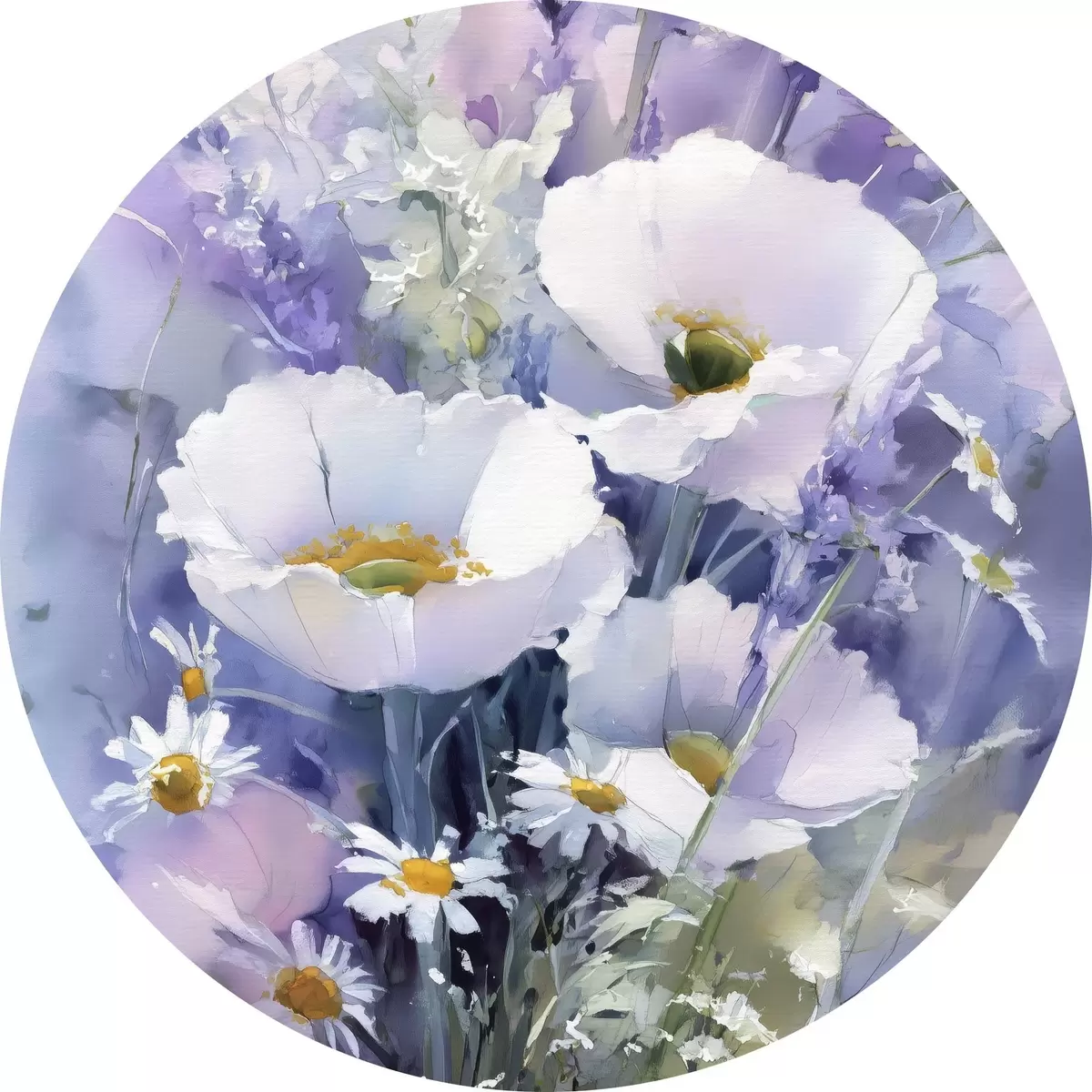 Cuadros redondos ramo de acuarelas en tonos lila y blanco r45720
