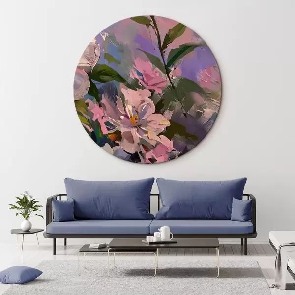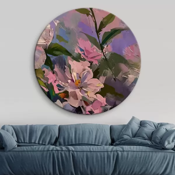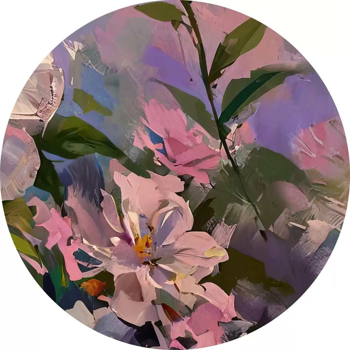 Cuadros redondos flores rosas al estilo de la pintura al óleo r45724