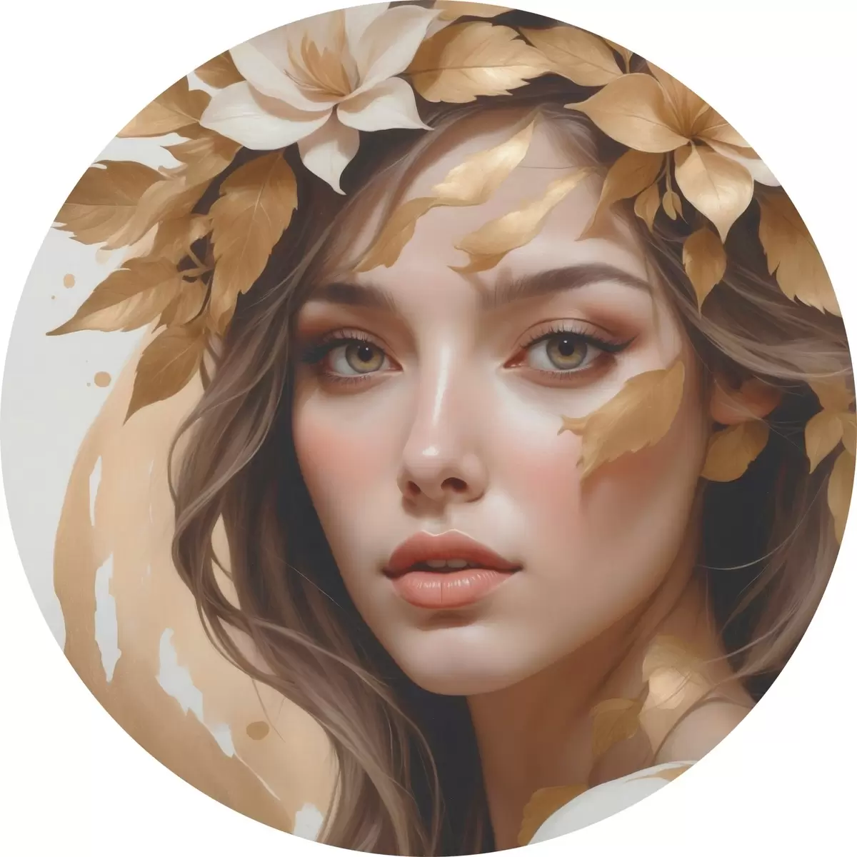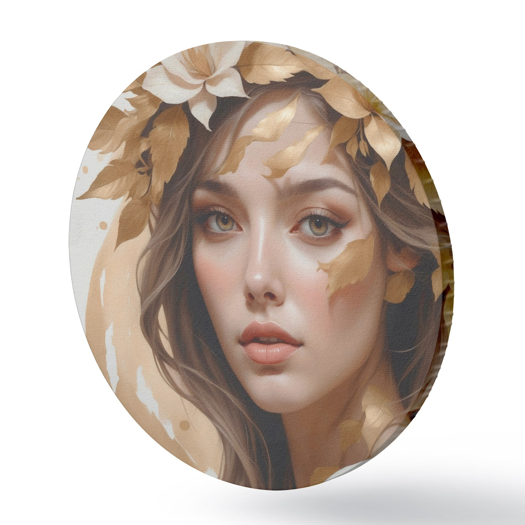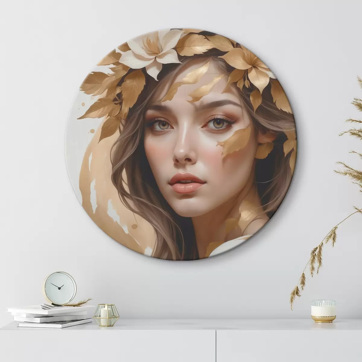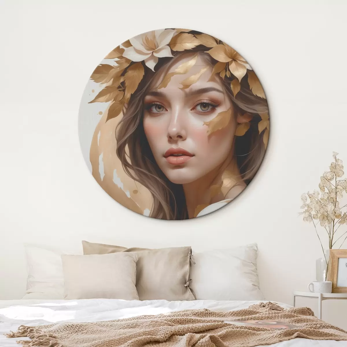 Cuadros redondos Una mujer con hojas en el pelo r45748