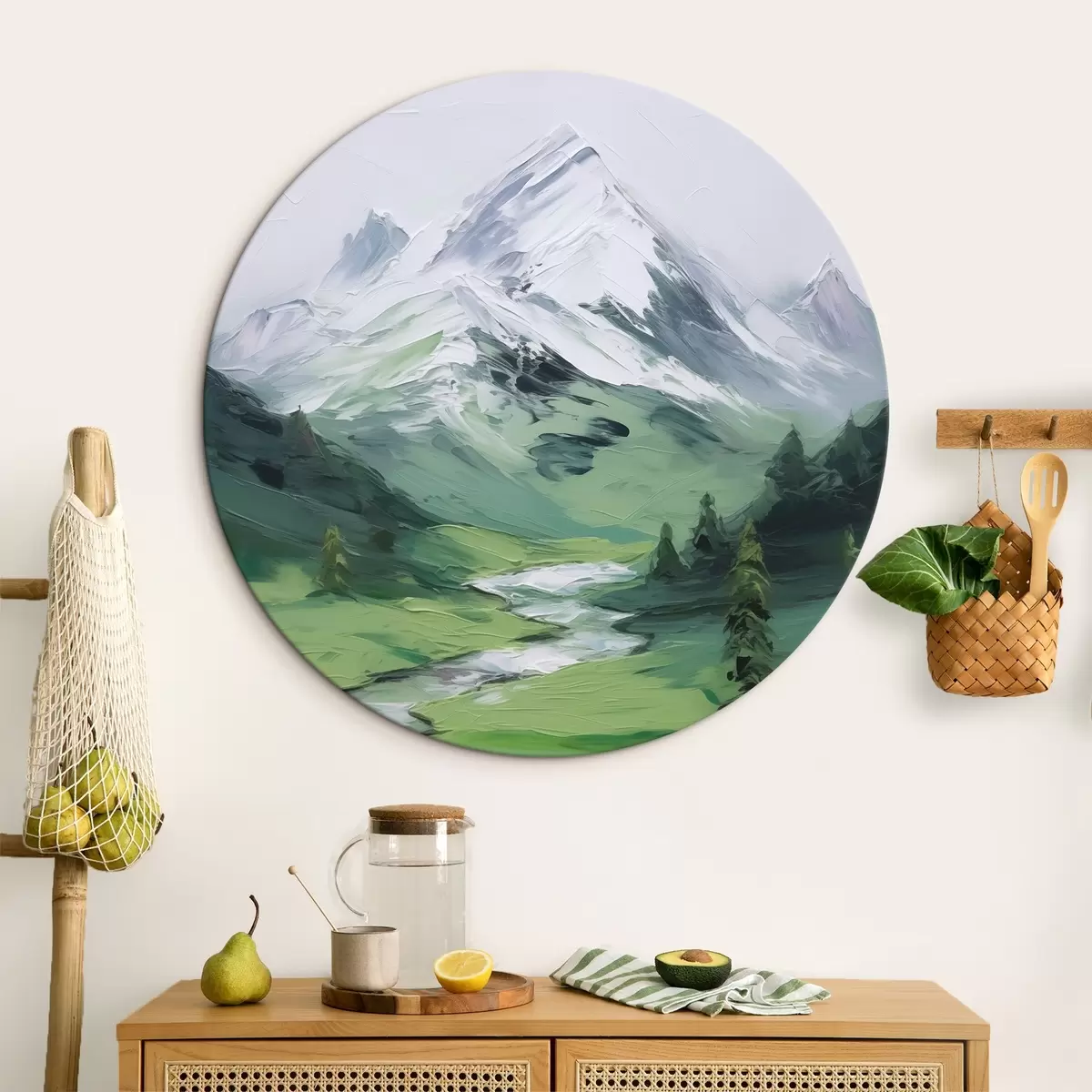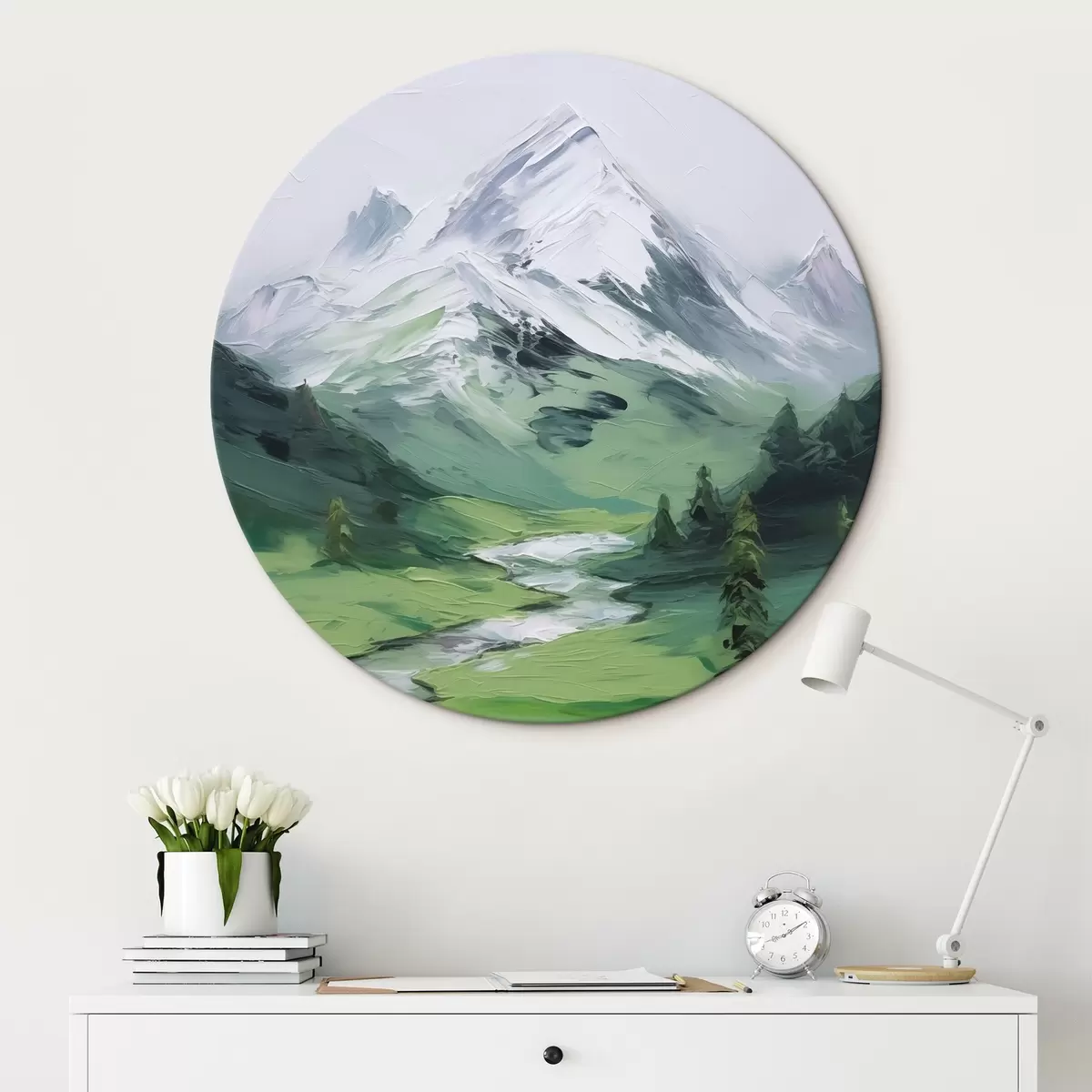 Cuadros redondos Pintura imitación valle de montaña r45775