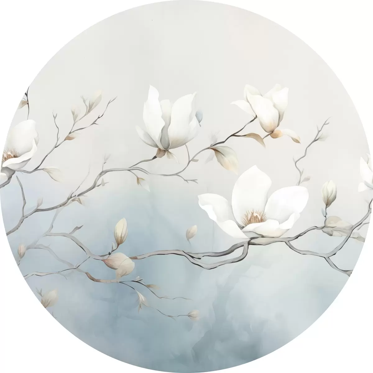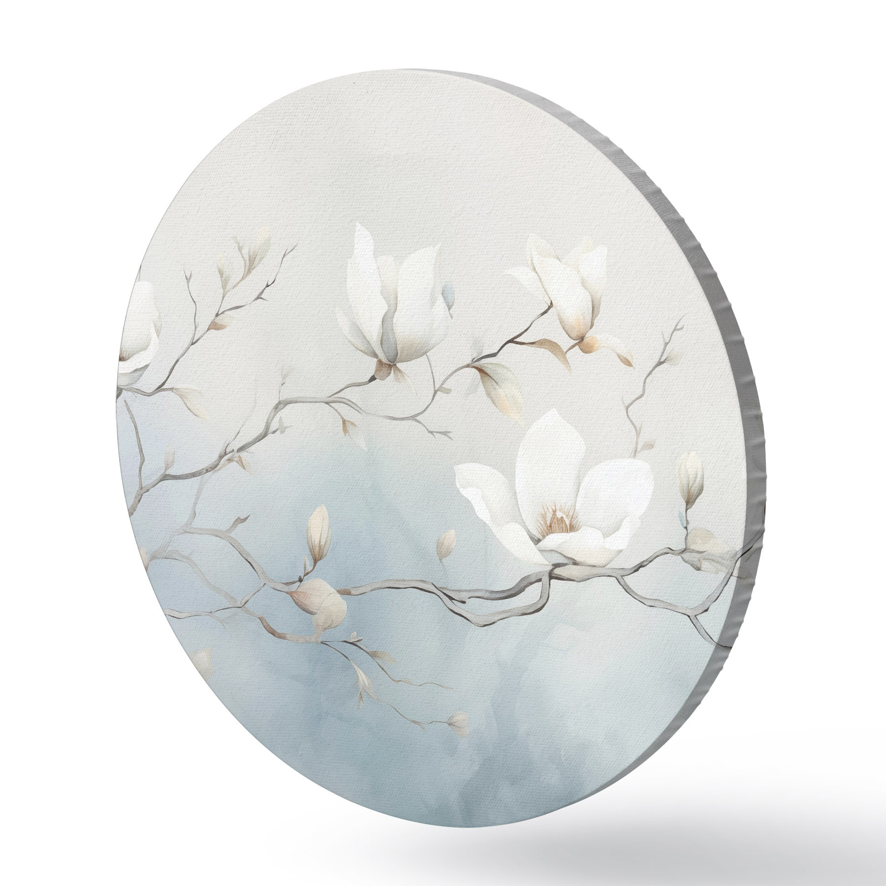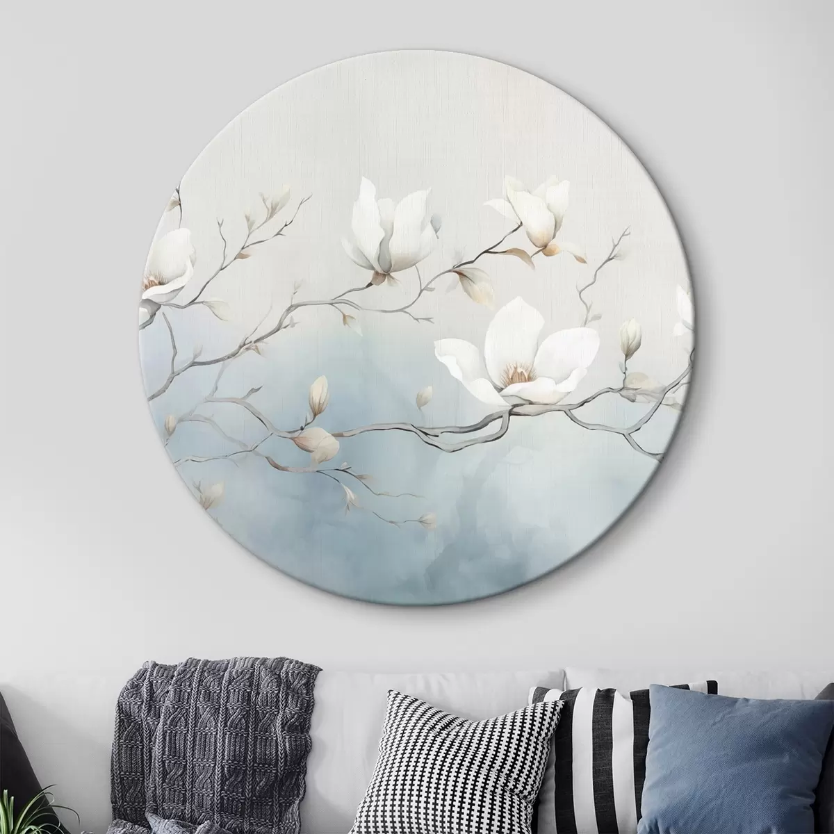 Cuadros redondos Ramas de magnolia con flores blancas sobre un delicado fondo r45806