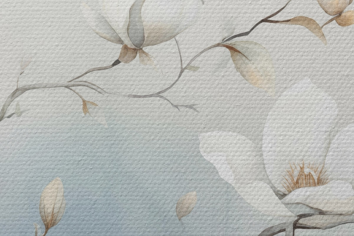 Foto Ramas de magnolia con flores blancas sobre un delicado fondo Nr r45806